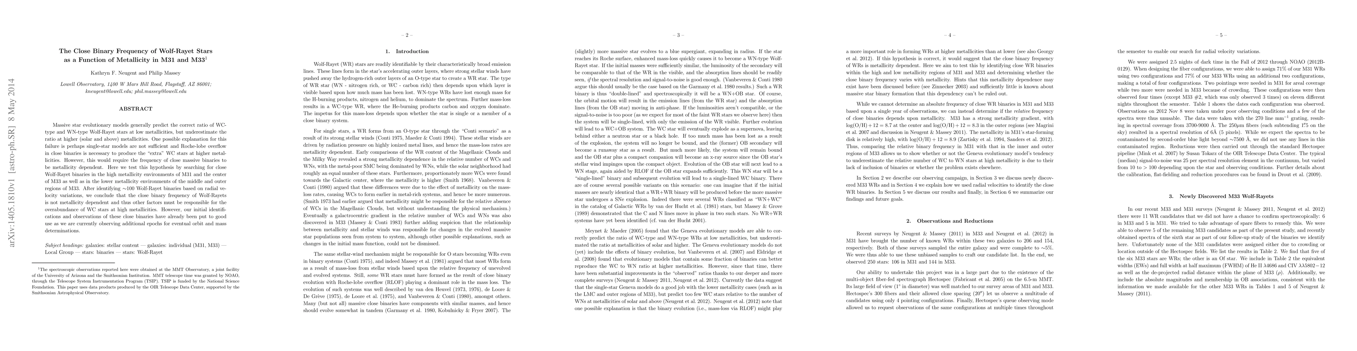 This study investigates the frequency of close Wolf-Rayet binaries in different metallicity environments of M31 and M33, finding no metallicity dependence. The results suggest that the overabundance of WC stars at higher metallicities is likely due to factors other than binary interactions.