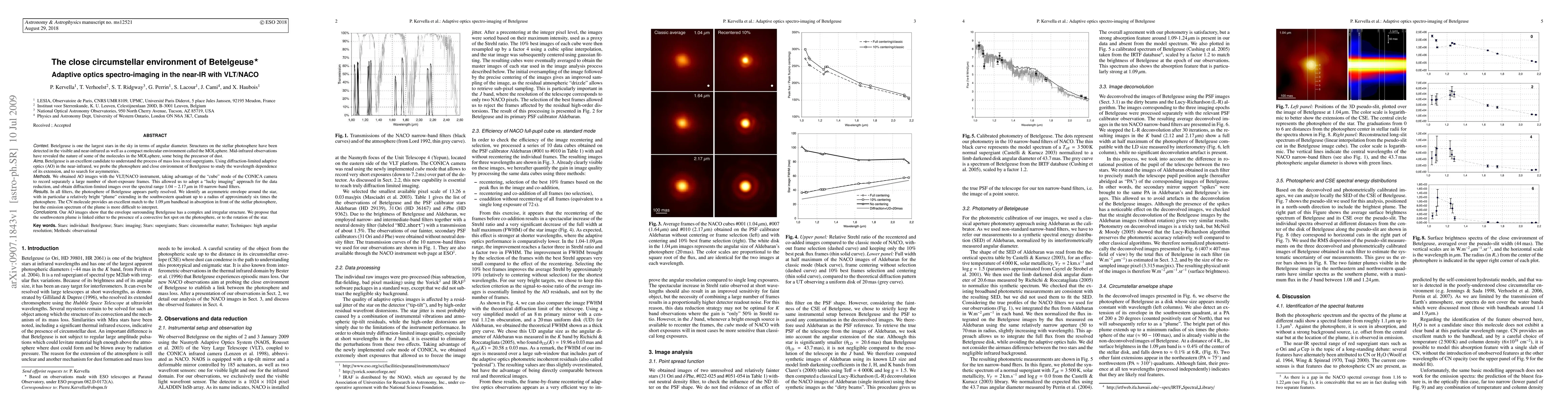 This study uses adaptive optics spectro-imaging with VLT/NACO to investigate Betelgeuse's photosphere and its circumstellar environment. The results reveal an asymmetric envelope with a prominent southwestern "plume," suggesting complex mass loss processes in red supergiants.