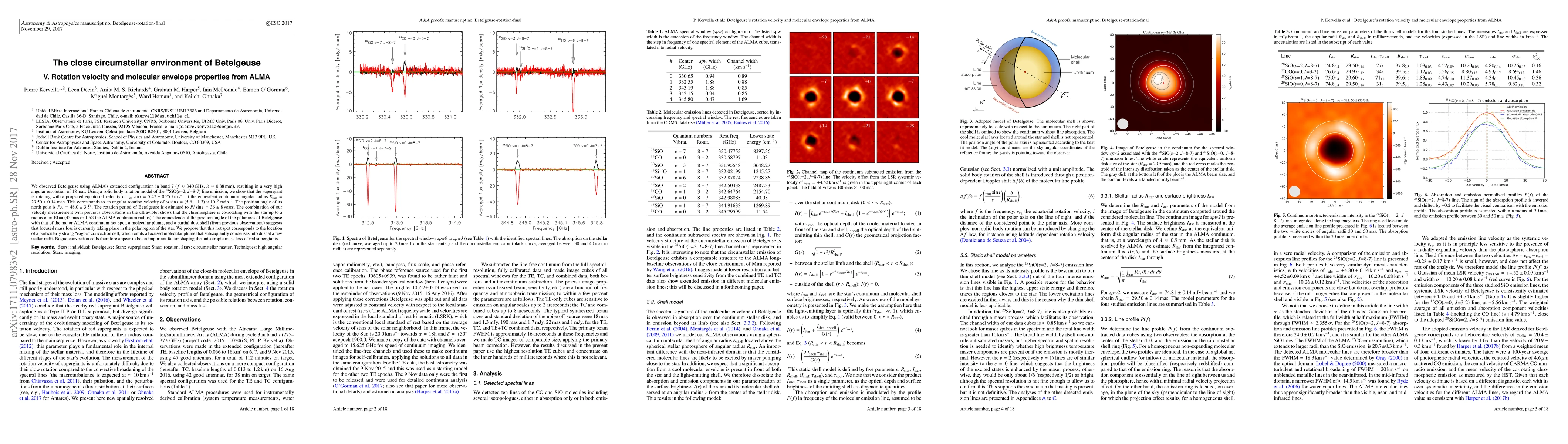 This study uses ALMA observations to determine Betelgeuse's rotation velocity and molecular envelope properties, revealing a projected equatorial velocity of 5.47 km/s and an estimated rotation period of 36 years. The chromosphere co-rotates with the star up to 10 au, suggesting focused mass loss in the polar region driven by rogue convection cells.