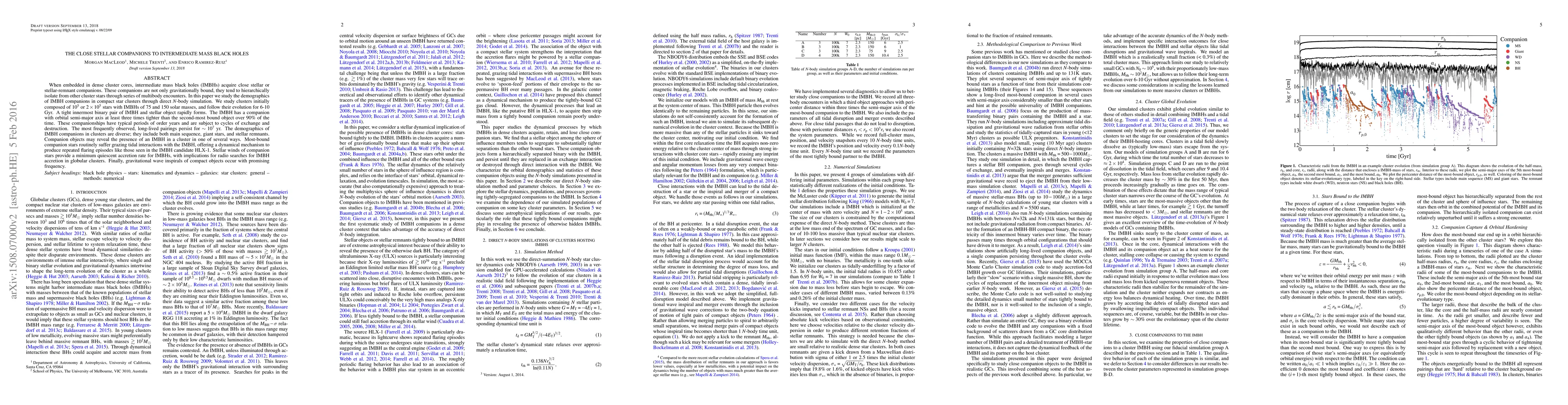 This paper investigates the formation and demographics of close stellar companions to intermediate mass black holes (IMBHs) in dense star clusters using $N$-body simulations. It finds that IMBHs typically form tight binary pairs with stellar objects, which persist for millions of years and can reveal the IMBH's presence through tidal interactions and gravitational wave emissions.