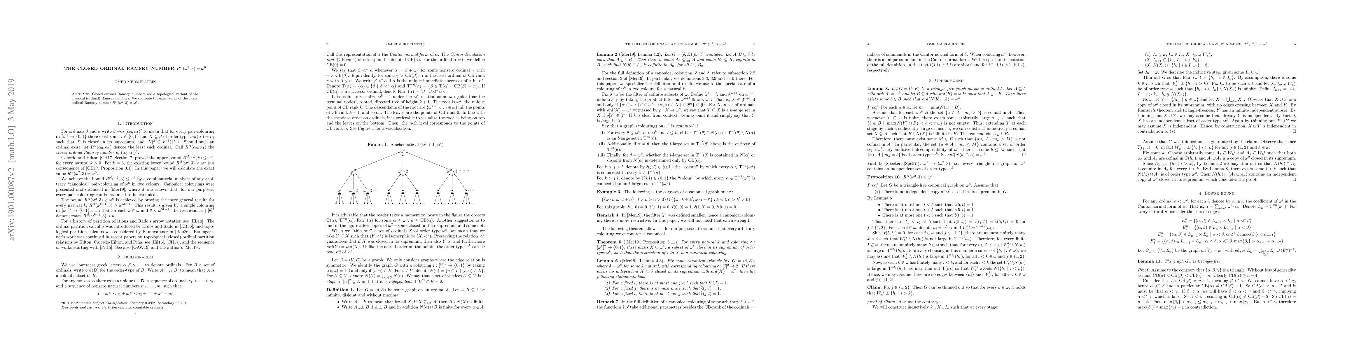 This paper determines the exact value of the closed ordinal Ramsey number $R^{cl}(\omega^2,3)$ to be $\omega^6$, exploring the topological variant of classical ordinal Ramsey numbers. The result provides a significant contribution to the study of combinatorial set theory.