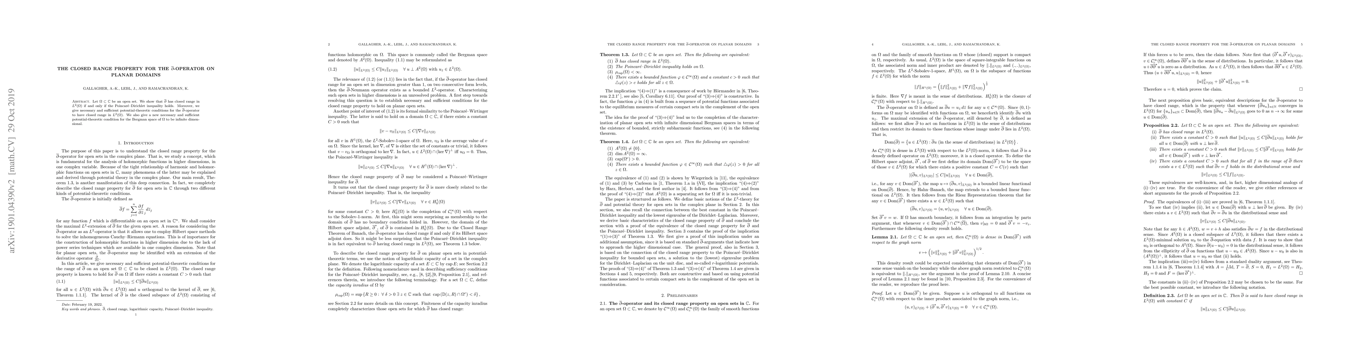 The paper shows that the $ar{ heta}$-operator has closed range in $L^{2}( ext{domain})$ if and only if the Poincaré-Dirichlet inequality holds, with implications for potential-theoretic conditions and infinite-dimensional Bergman spaces.