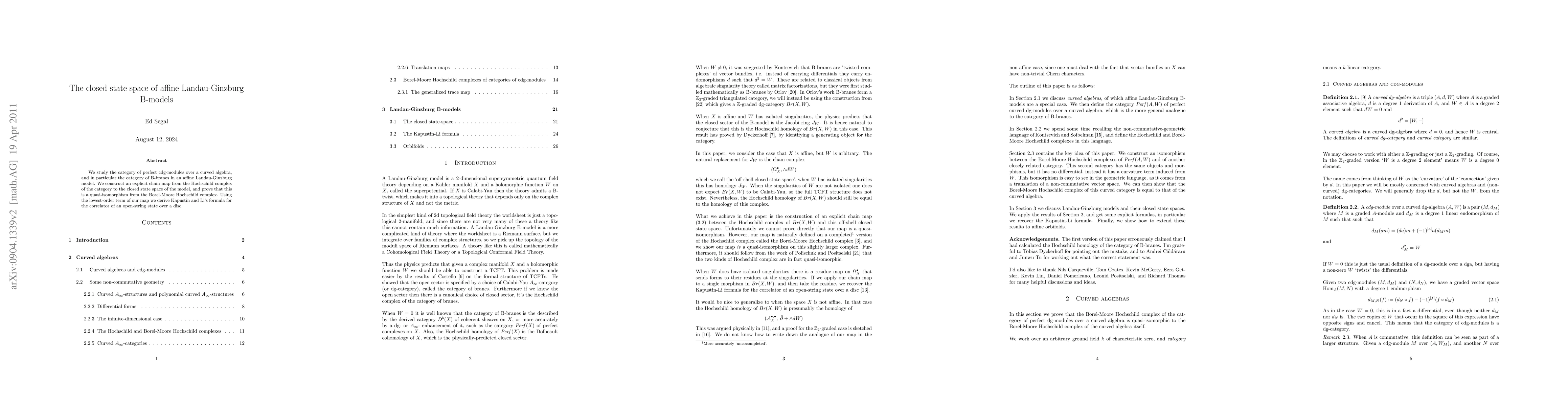 We study the category of perfect cdg-modules over a curved algebra, and in particular the category of B-branes in an affine Landau-Ginzburg model. We construct an explicit chain map from the Hochschild complex of the category to the closed state space of the model, and prove that this is a quasi-isomorphism from the Borel-Moore Hochschild complex. Using the lowest-order term of our map we derive Kapustin and Li's formula for the correlator of an open-string state over a disc.
