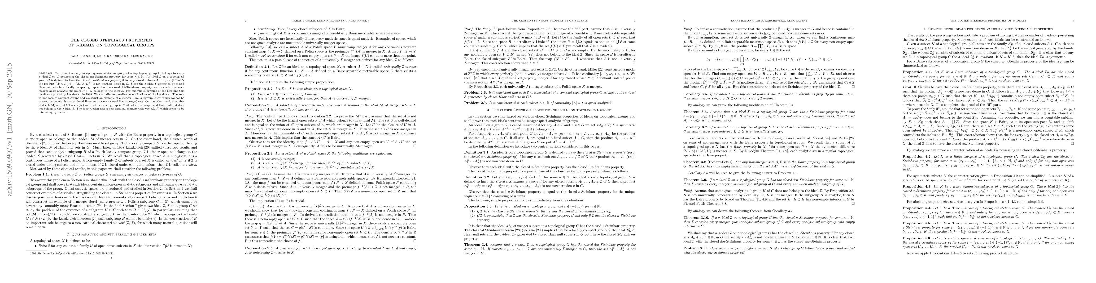 We prove that any meager quasi-analytic subgroup of a topological group $G$ belongs to every $\sigma$-ideal $\mathcal I$ on $G$ possessing the closed $\pm n$-Steinhaus property for some $n\in\mathbb N$. An ideal $\mathcal I$ on a topological group $G$ is defined to have the closed $\pm n$-Steinhaus property if for any closed subsets $A_1,\dots,A_n\notin\mathcal I$ of $G$ the product $(A_1\cup A_1^{-1})\cdots (A_n\cup A_n^{-1})$ is not nowhere dense in $G$. Since the $\sigma$-ideal $\mathcal E$ generated by closed Haar null sets in a locally compact group $G$ has the closed $\pm 2$-Steinhaus property, we conclude that each meager quasi-analytic subgroup $H\subset G$ belongs to the ideal $\mathcal E$. For analytic subgroups of the real line this result was proved by Laczkovich in 1998. We shall discuss possible generalizations of the Laczkovich Theorem to non-locally compact groups and construct an example of a meager Borel subgroup in $\mathbb Z^\omega$ which cannot be covered by countably many closed Haar-null (or even closed Haar-meager) sets. On the other hand, assuming that $cof(\mathcal M)=cov(\mathcal M)=cov(\mathcal N)$ we construct a subgroup $H\subset 2^\omega$ which is meager and Haar null but does not belong to the $\sigma$-ideal $\mathcal E$. The construction uses a new cardinal characteristic $voc^*(\mathcal I,\mathcal J)$ which seems to be interesting by its own.