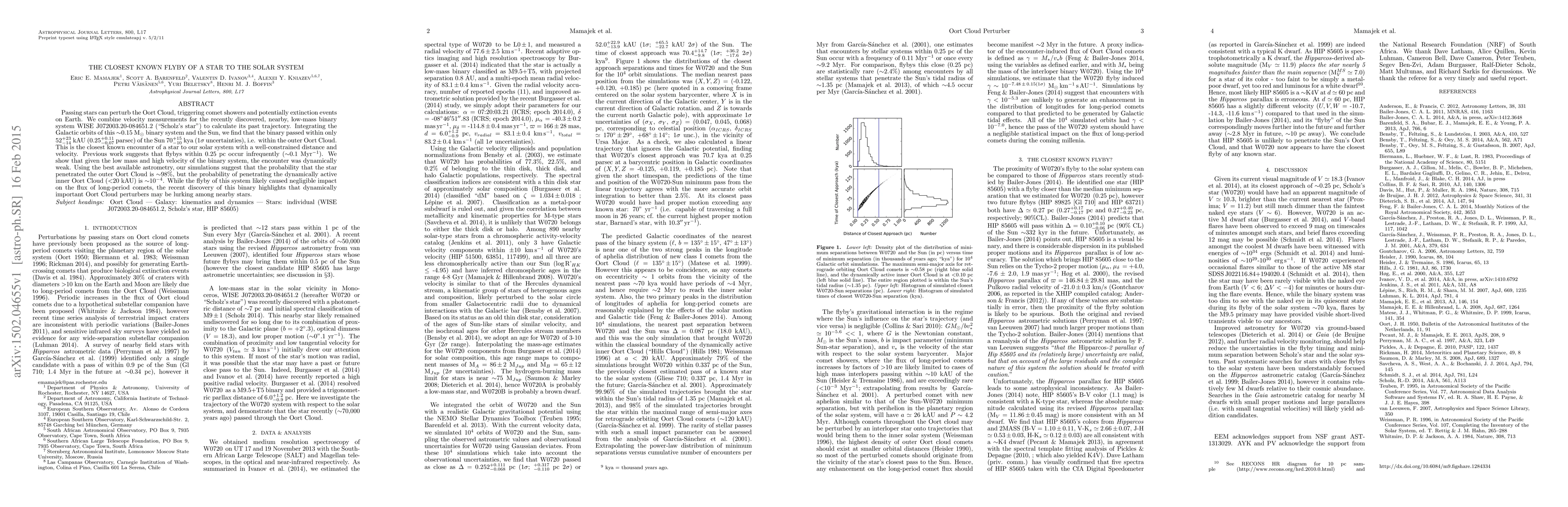 A nearby binary star system passed within 0.25 parsecs of the Sun, perturbing the Oort Cloud and potentially triggering comet showers and extinction events on Earth.