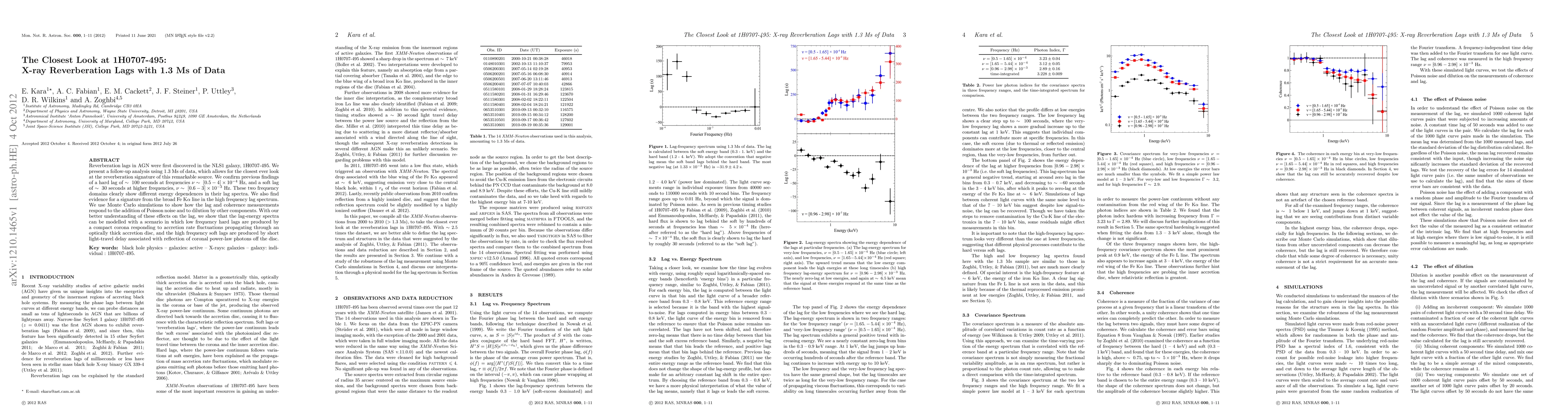 Researchers studied a type of galaxy called 1H0707-495, finding that its reverberation lags, or delays in the timing of X-ray signals, vary depending on frequency, with hard lags at lower frequencies and soft lags at higher frequencies.