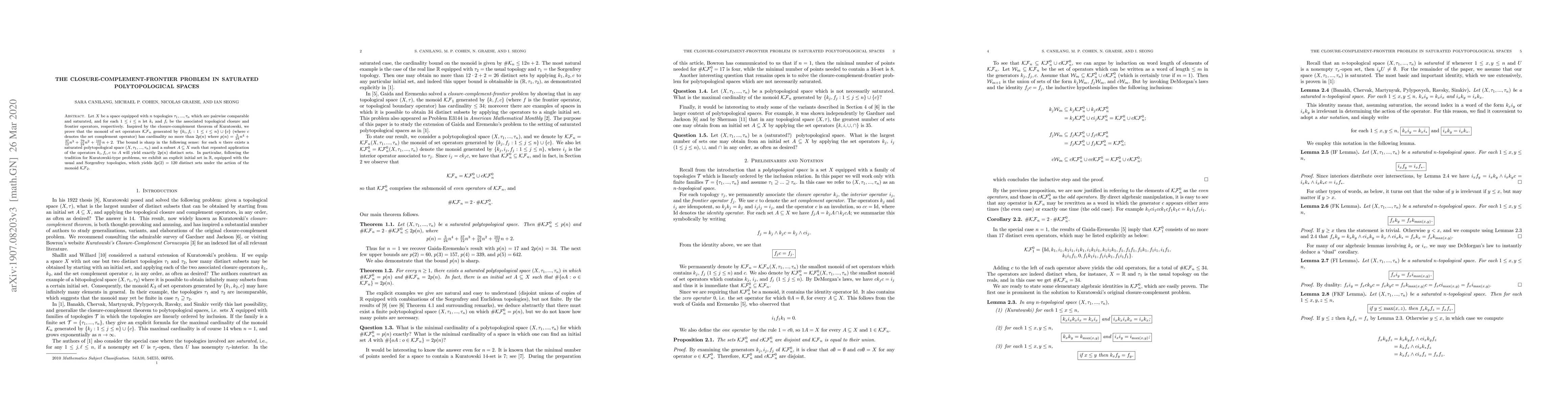 Let $X$ be a space equipped with $n$ topologies $\tau_1,...,\tau_n$ which are pairwise comparable and saturated, and for each $1\leq i\leq n$ let $k_i$ and $f_i$ be the associated topological closure and frontier operators, respectively. Inspired by the closure-complement theorem of Kuratowski, we prove that the monoid of set operators $\mathcal{KF}_n$ generated by $\{k_i,f_i:1\leq i\leq n\}\cup\{c\}$ (where $c$ denotes the set complement operator) has cardinality no more than $2p(n)$ where $p(n)=\frac{5}{24}n^4+\frac{37}{12}n^3+\frac{79}{24}n^2+\frac{101}{12}n+2$. The bound is sharp in the following sense: for each $n$ there exists a saturated polytopological space $(X,\tau_1,...,\tau_n)$ and a subset $A\subseteq X$ such that repeated application of the operators $k_i, f_i, c$ to $A$ will yield exactly $2p(n)$ distinct sets. In particular, following the tradition for Kuratowski-type problems, we exhibit an explicit initial set in $\mathbb{R}$, equipped with the usual and Sorgenfrey topologies, which yields $2p(2)=120$ distinct sets under the action of the monoid $\mathcal{KF}_2$.