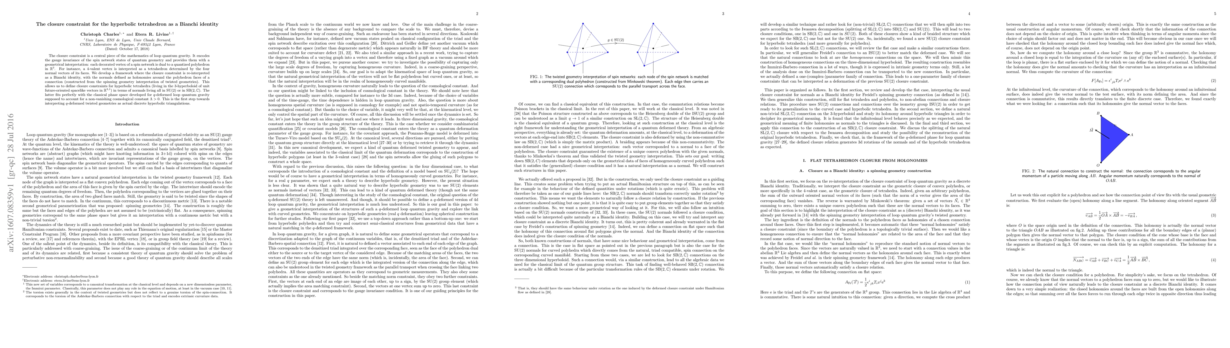 This paper reinterprets the closure constraint in loop quantum gravity as a Bianchi identity, linking it to hyperbolic tetrahedra and providing a geometrical interpretation of spin network states. The framework developed allows for the definition of closure constraints in terms of normals in $SU(2)$ or $SB(2,\mathbb{C})$, relevant for $q$-deformed loop quantum gravity with a positive cosmological constant.