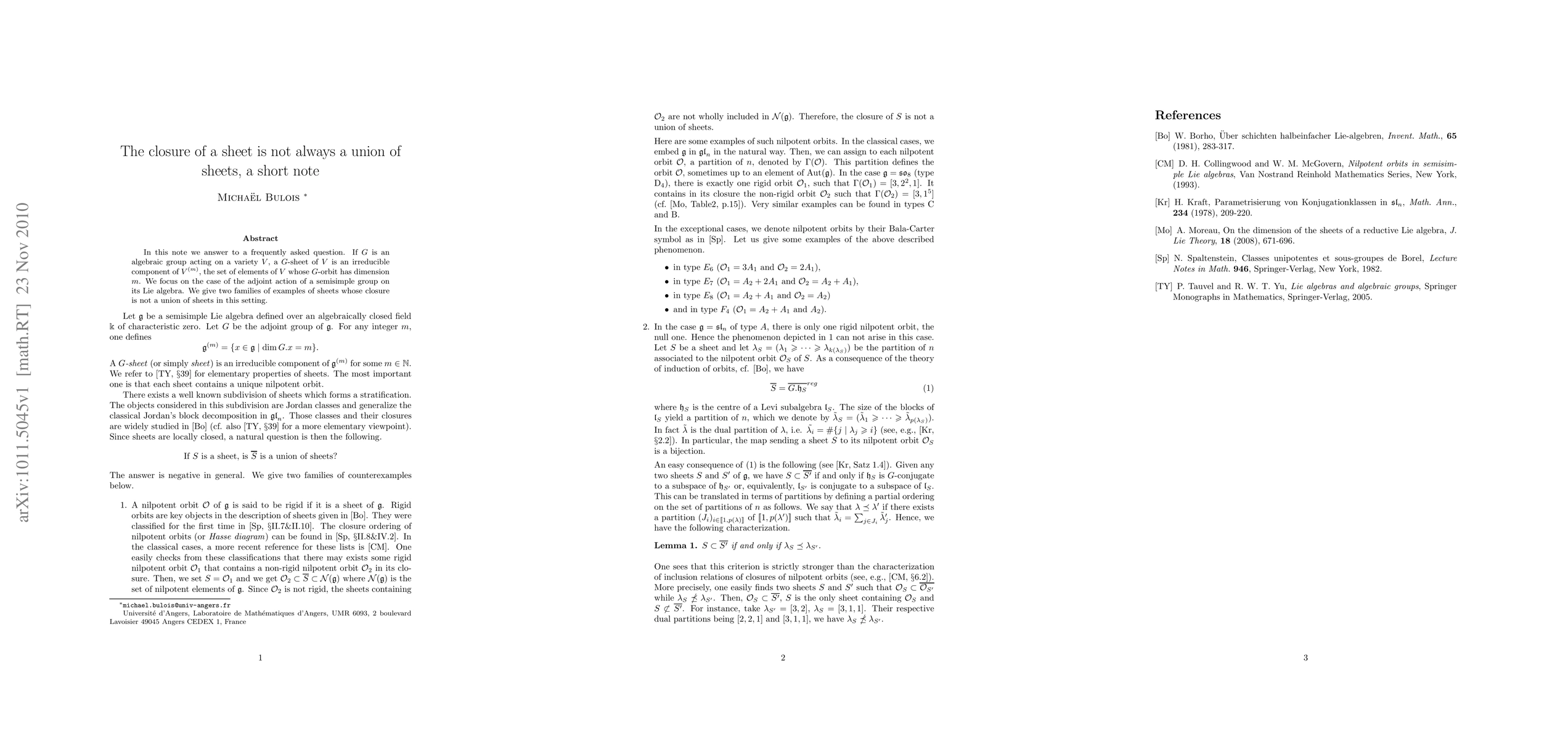 Research shows that a closure of a sheet in algebraic group action on varieties is not always a union of sheets, with examples given for semisimple groups acting on their Lie algebras.