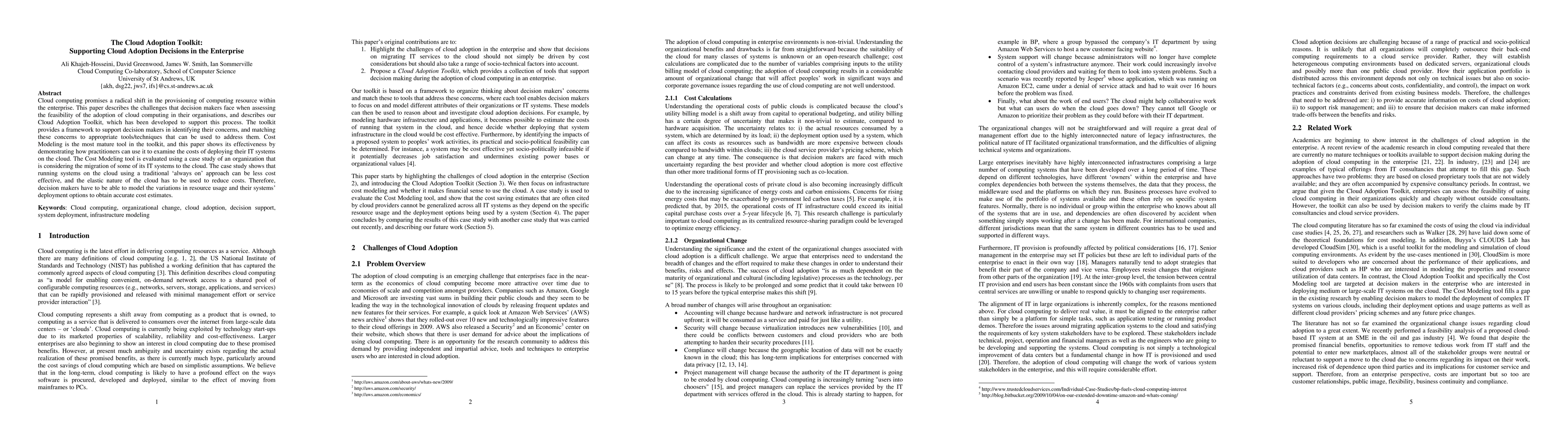 This paper presents a Cloud Adoption Toolkit to assist enterprise decision makers in evaluating cloud computing adoption, focusing on the Cost Modeling tool within the toolkit. The case study demonstrates that cloud deployment costs can be reduced by leveraging the elastic nature of cloud resources, highlighting the need for accurate cost modeling based on system usage patterns.