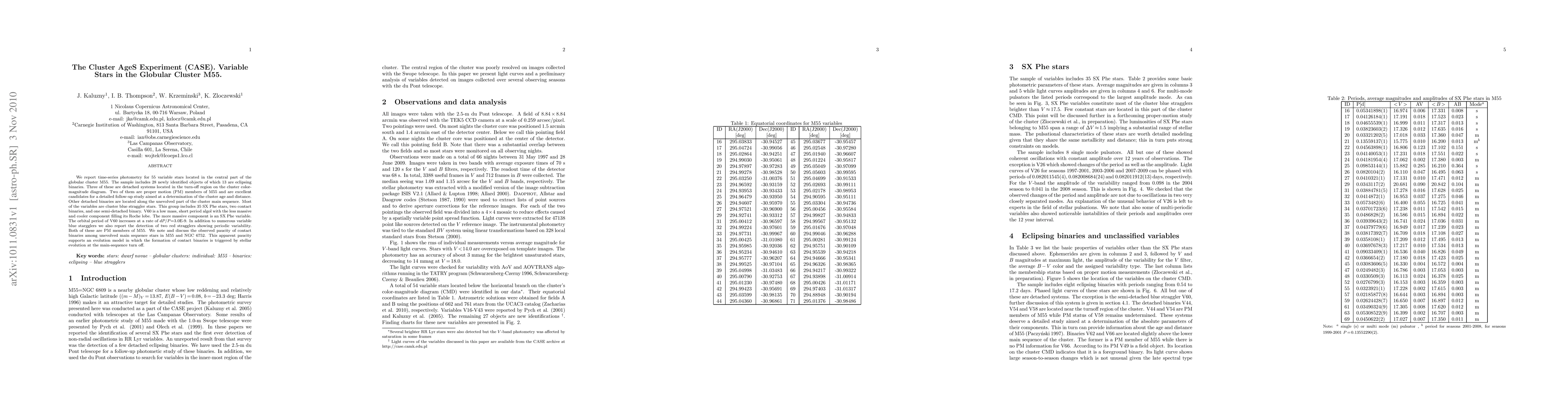 The Cluster AgeS Experiment (CASE) reports time-series photometry of 55 variable stars in M55, including 28 new discoveries, 13 of which are eclipsing binaries. Notably, two detached binaries in the turn-off region are promising for detailed age and distance determination studies.