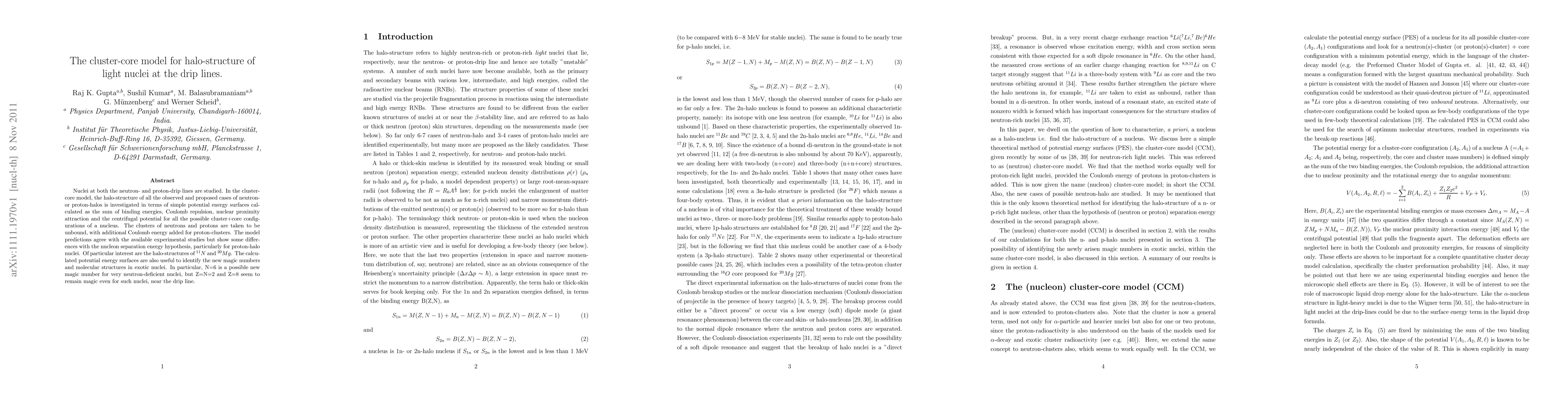 Nuclei at both the neutron- and proton-drip lines are studied. In the cluster-core model, the halo-structure of all the observed and proposed cases of neutron- or proton-halos is investigated in terms of simple potential energy surfaces calculated as the sum of binding energies, Coulomb repulsion, nuclear proximity attraction and the centrifugal potential for all the possible cluster+core configurations of a nucleus. The clusters of neutrons and protons are taken to be unbound, with additional Coulomb energy added for proton-clusters. The model predictions agree with the available experimental studies but show some differences with the nucleon separation energy hypothesis, particularly for proton-halo nuclei. Of particular interest are the halo-structures of $^{11}N$ and $^{20}Mg$. The calculated potential energy surfaces are also useful to identify the new magic numbers and molecular structures in exotic nuclei. In particular, N=6 is a possible new magic number for very neutron-deficient nuclei, but Z=N=2 and Z=8 seem to remain magic even for such nuclei, near the drip line.
