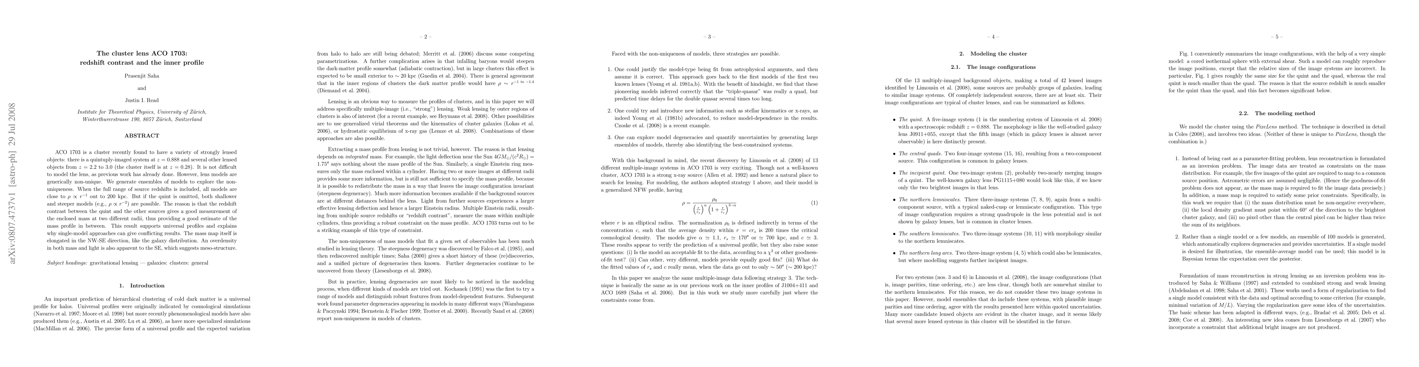 ACO 1703 is a cluster recently found to have a variety of strongly lensed objects: there is a quintuply-imaged system at z=0.888 and several other lensed objects from z=2.2 to 3.0 (the cluster itself is at z=0.28). It is not difficult to model the lens, as previous work has already done. However, lens models are generically non-unique. We generate ensembles of models to explore the non-uniqueness. When the full range of source redshifts is included, all models are close to \rho \propto r^{-1} out to 200 kpc. But if the quint is omitted, both shallower and steeper models (e.g., \rho \propto r^{-2}) are possible. The reason is that the redshift contrast between the quint and the other sources gives a good measurement of the enclosed mass at two different radii, thus providing a good estimate of the mass profile in between. This result supports universal profiles and explains why single-model approaches can give conflicting results. The mass map itself is elongated in the NW-SE direction, like the galaxy distribution. An overdensity in both mass and light is also apparent to the SE, which suggests meso-structure.