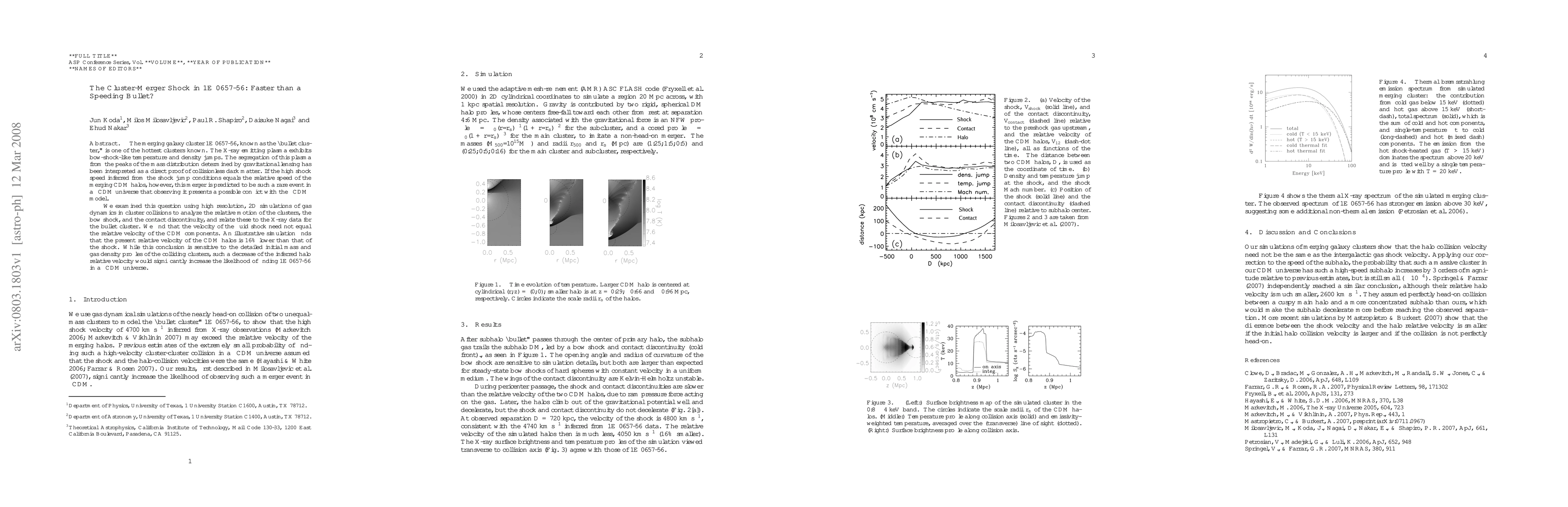 The merging galaxy cluster 1E 0657-56, known as the "bullet cluster," is one of the hottest clusters known. The X-ray emitting plasma exhibits bow-shock-like temperature and density jumps. The segregation of this plasma from the peaks of the mass distribution determined by gravitational lensing has been interpreted as a direct proof of collisionless dark matter. If the high shock speed inferred from the shock jump conditions equals the relative speed of the merging CDM halos, however, this merger is predicted to be such a rare event in a LCDM universe that observing it presents a possible conflict with the LCDM model. We examined this question using high resolution, 2D simulations of gas dynamics in cluster collisions to analyze the relative motion of the clusters, the bow shock, and the contact discontinuity, and relate these to the X-ray data for the bullet cluster. We find that the velocity of the fluid shock need not equal the relative velocity of the CDM components. An illustrative simulation finds that the present relative velocity of the CDM halos is 16% lower than that of the shock. While this conclusion is sensitive to the detailed initial mass and gas density profiles of the colliding clusters, such a decrease of the inferred halo relative velocity would significantly increase the likelihood of finding 1E 0657-56 in a LCDM universe. (Conference proceedings based on a poster at Bash Symposium 2007)
