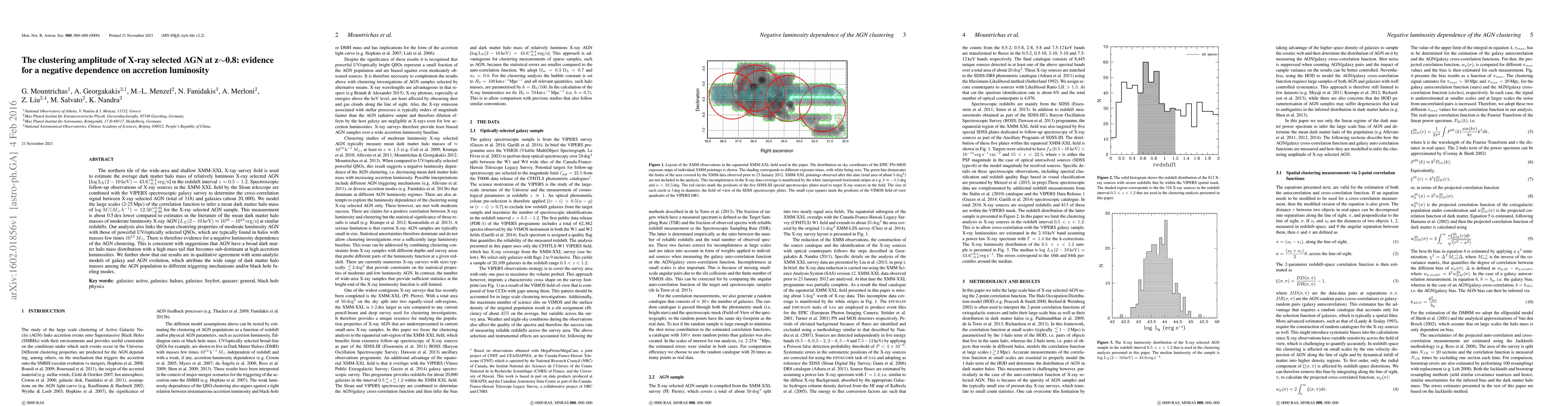 This paper investigates the clustering amplitude of X-ray selected AGN at z=0.8, finding a negative dependence on accretion luminosity. The study estimates a lower mean dark matter halo mass for luminous AGN compared to moderate luminosity AGN, suggesting a broad dark matter halo mass distribution among AGN.