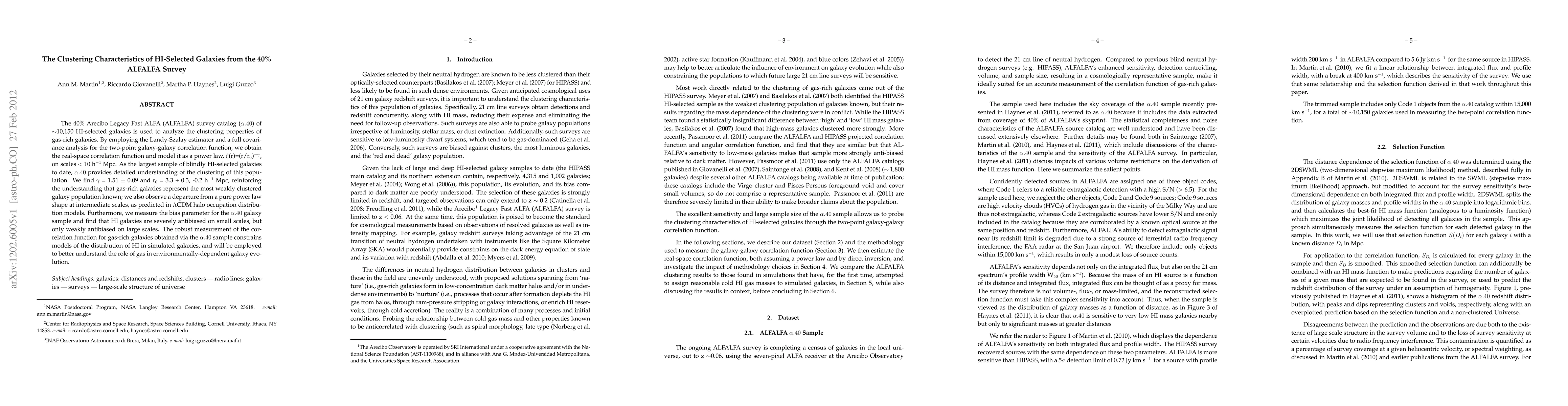 The study analyzes clustering properties of 10,150 HI-selected galaxies from the 40% ALFALFA survey, finding a power-law correlation function with u03c3 = 1.51 u00b1 0.09 and r_0 = 3.3 u00b1 0.3 h^-1 Mpc. Gas-rich galaxies are found to be the least clustered, with scale-dependent bias, informing models of HI distribution in simulated galaxies and environmentally-dependent galaxy evolution.