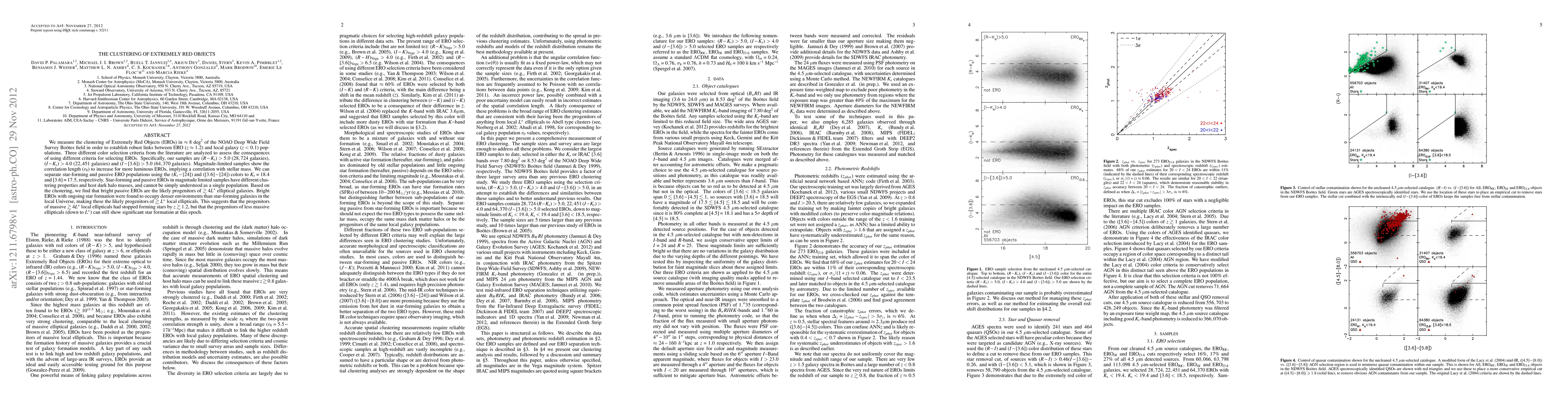 Researchers studied extremely red objects (EROs) in a deep field survey to understand their clustering properties and how they relate to galaxy evolution. They found that bright EROs with ongoing star formation occupy denser environments than other galaxies at z>1.2.