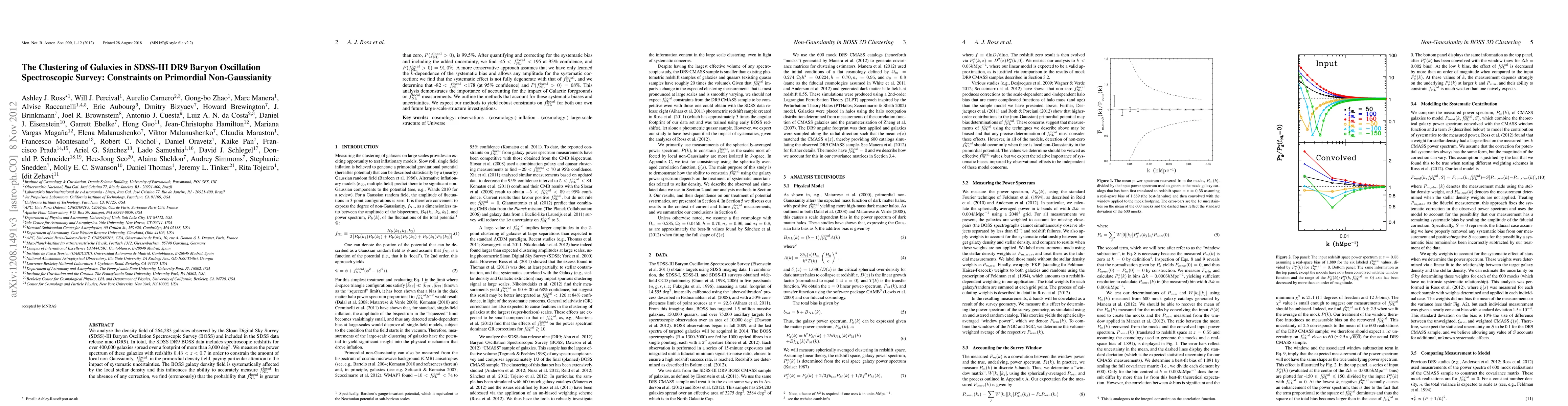 This paper analyzes the clustering of galaxies from the SDSS-III BOSS survey to measure the power spectrum and constrain primordial non-Gaussianity, finding -82 < f_NL,local < 178 at 95% confidence after correcting for systematic biases due to local stellar density. The study highlights the importance of accounting for Galactic foregrounds in such measurements.
