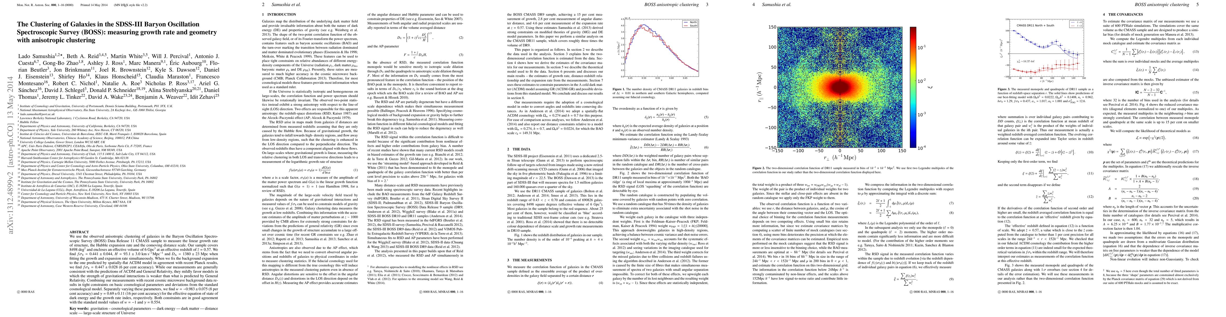 This paper measures the linear growth rate of structure and the Hubble expansion rate using the anisotropic clustering of galaxies in the BOSS survey. It finds $f\sigma_8 = 0.441 \pm 0.044$, $H = 93.1 \pm 3.0\ {\mathrm{km} \mathrm{s}^{-1} \mathrm{Mpc}^{-1}}$, and $D_{\rm A} = 1380 \pm 23\ {\rm Mpc}$, mildly favoring models with weaker gravitational interactions than General Relativity.