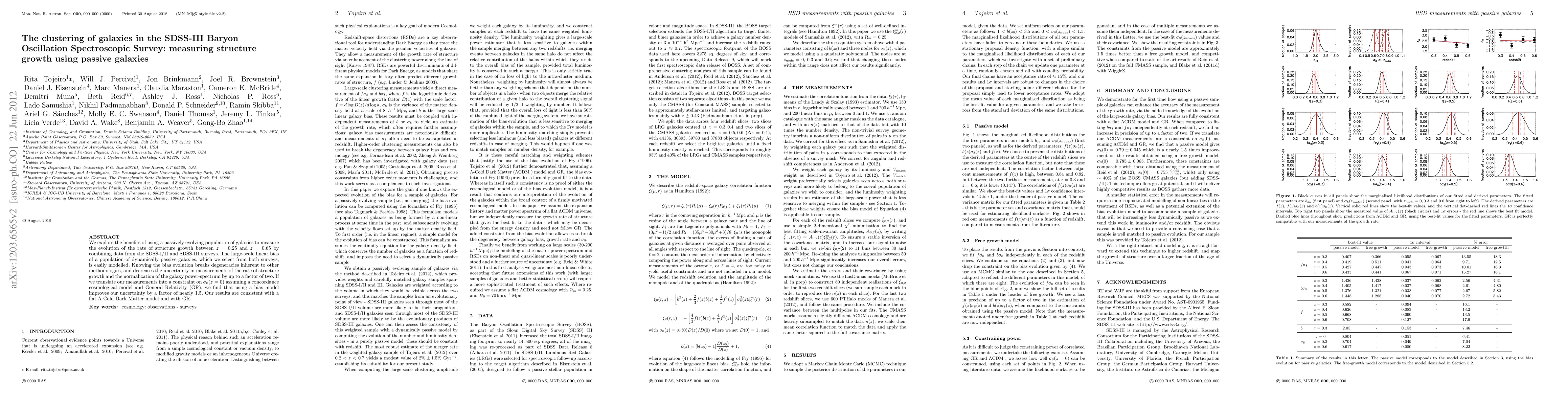 We explore the benefits of using a passively evolving population of galaxies to measure the evolution of the rate of structure growth between z=0.25 and z=0.65 by combining data from the SDSS-I/II and SDSS-III surveys. The large-scale linear bias of a population of dynamically passive galaxies, which we select from both surveys, is easily modeled. Knowing the bias evolution breaks degeneracies inherent to other methodologies, and decreases the uncertainty in measurements of the rate of structure growth and the normalization of the galaxy power-spectrum by up to a factor of two. If we translate our measurements into a constraint on sigma_8(z=0) assuming a concordance cosmological model and General Relativity (GR), we find that using a bias model improves our uncertainty by a factor of nearly 1.5. Our results are consistent with a flat Lambda Cold Dark Matter model and with GR.