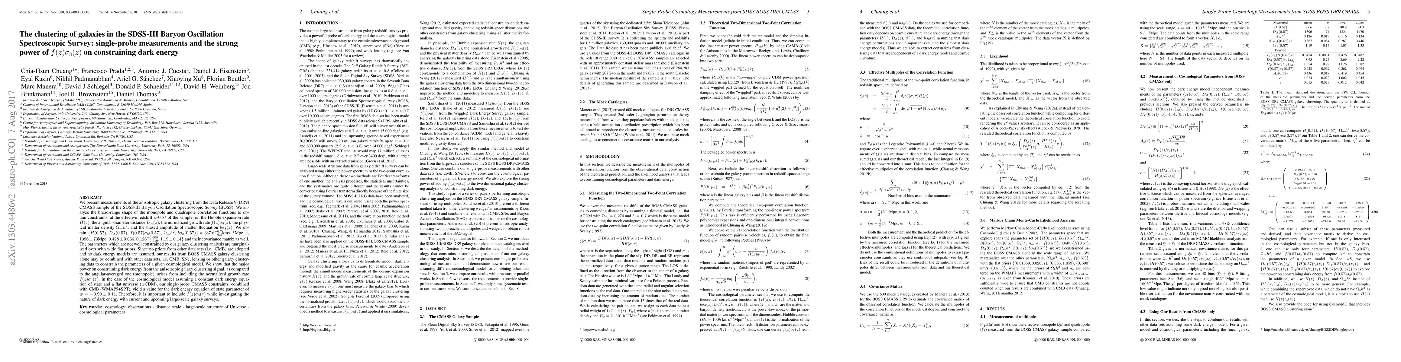 This paper reports on measurements of anisotropic galaxy clustering from the SDSS-III BOSS survey, providing constraints on cosmological parameters including the normalized growth rate $f(z)\sigma_8(z)$. The study highlights the significant role of $f(z)\sigma_8(z)$ in constraining dark energy, yielding a dark energy equation of state parameter $w=-0.90\pm0.11$ when combined with CMB data.