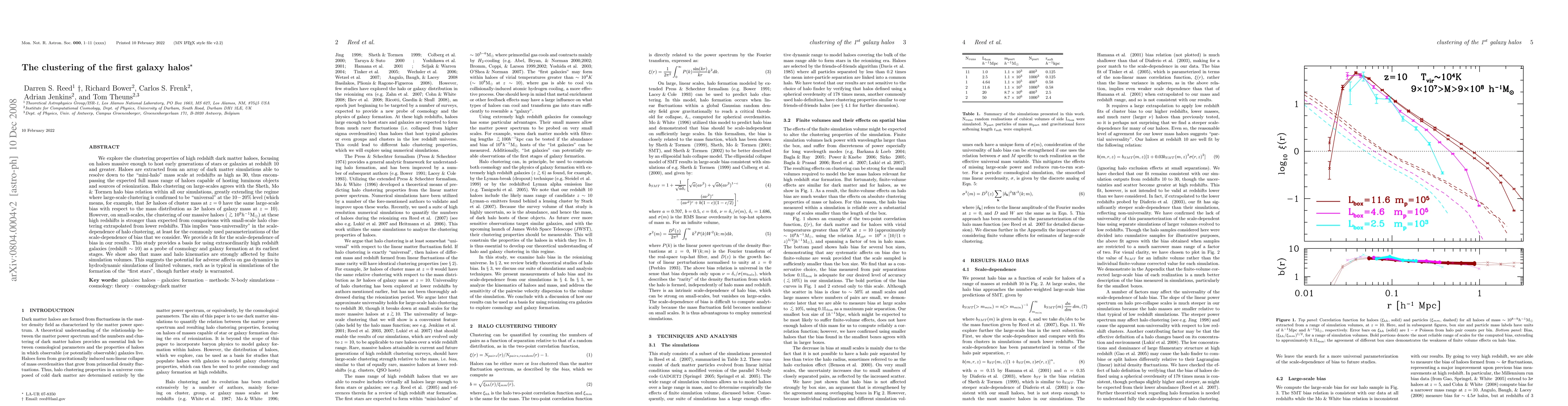 We explore the clustering properties of high redshift dark matter halos, focusing on halos massive enough to host early generations of stars or galaxies at redshift 10 and greater. Halos are extracted from an array of dark matter simulations able to resolve down to the "mini-halo" mass scale at redshifts as high as 30, thus encompassing the expected full mass range of halos capable of hosting luminous objects and sources of reionization. Halo clustering on large-scales agrees with the Sheth, Mo & Tormen halo bias relation within all our simulations, greatly extending the regime where large-scale clustering is confirmed to be "universal" at the 10-20% level (which means, for example, that 3sigma halos of cluster mass at z=0 have the same large-scale bias with respect to the mass distribution as 3sigma halos of galaxy mass at z=10). However, on small-scales, the clustering of our massive halos (> ~10^9 Msun/h) at these high redshifts is stronger than expected from comparisons with small-scale halo clustering extrapolated from lower redshifts. This implies "non-universality" in the scale-dependence of halo clustering, at least for the commonly used parameterizations of the scale-dependence of bias that we consider. We provide a fit for the scale-dependence of bias in our results. This study provides a basis for using extraordinarily high redshift galaxies (redshift ~10) as a probe of cosmology and galaxy formation at its earliest stages. We show also that mass and halo kinematics are strongly affected by finite simulation volumes. This suggests the potential for adverse affects on gas dynamics in hydrodynamic simulations of limited volumes, such as is typical in simulations of the formation of the "first stars", though further study is warranted.