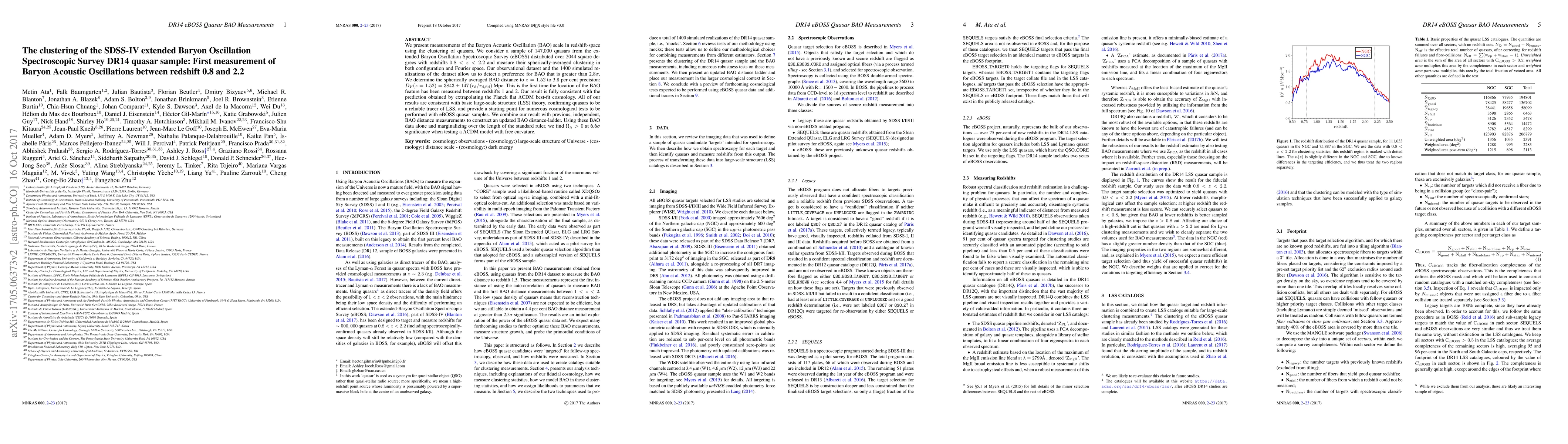This paper measures Baryon Acoustic Oscillations in a sample of 147,000 quasars over redshifts 0.8-2.2, detecting the first BAO feature between these redshifts with high precision.