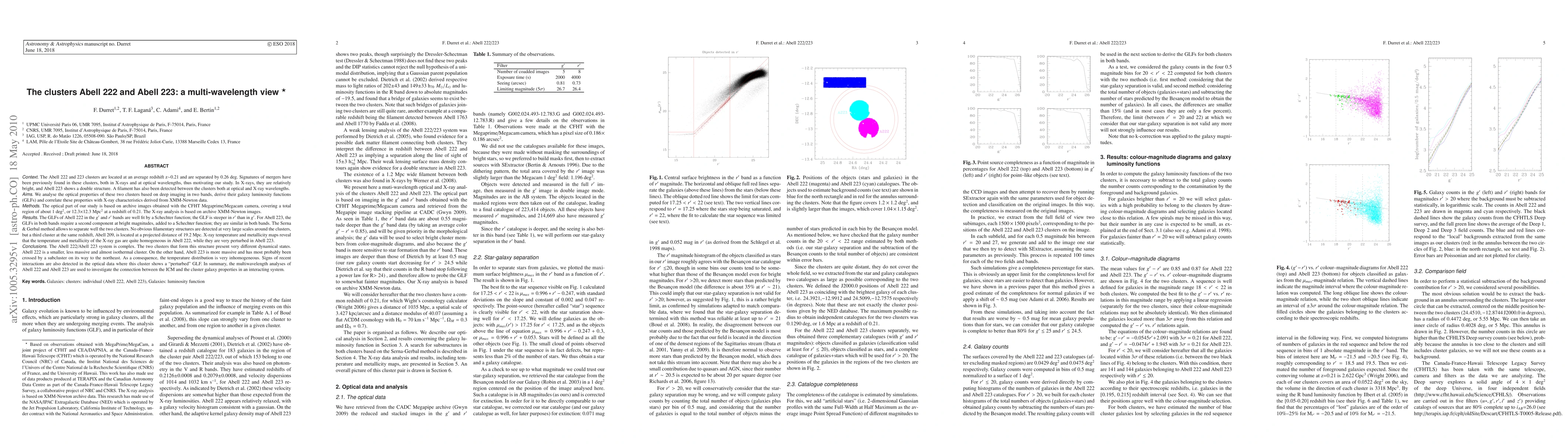 The study of Abell 222 and Abell 223 clusters reveals complex interactions between the galaxy cluster properties and their X-ray gas, with different dynamical states in each cluster, and a third cluster at the same redshift located nearby.