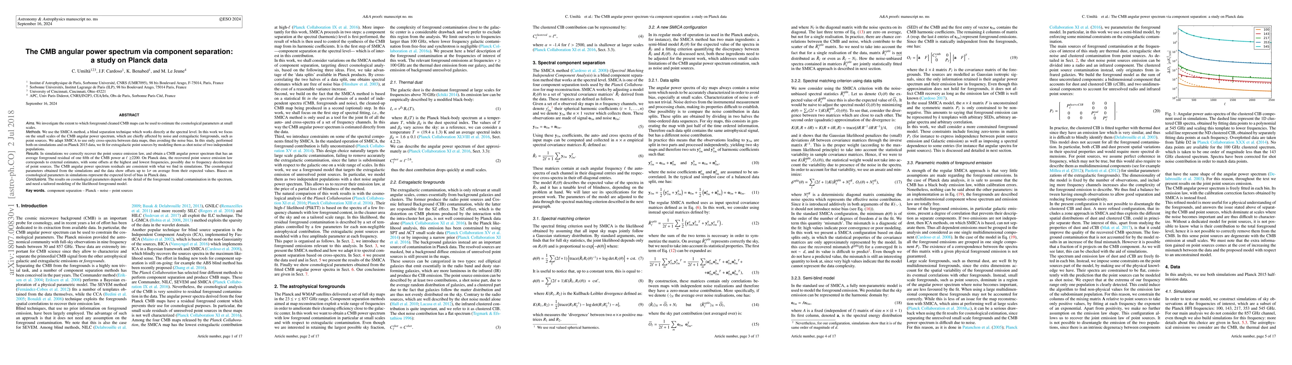 This paper uses the SMICA method to separate foregrounds from Planck CMB data and estimates cosmological parameters at small angular scales. The adapted SMICA technique focuses on cross-spectra to mitigate noise bias, successfully recovering point source emission laws and achieving foreground residuals of one fifth of CMB power at high multipoles.