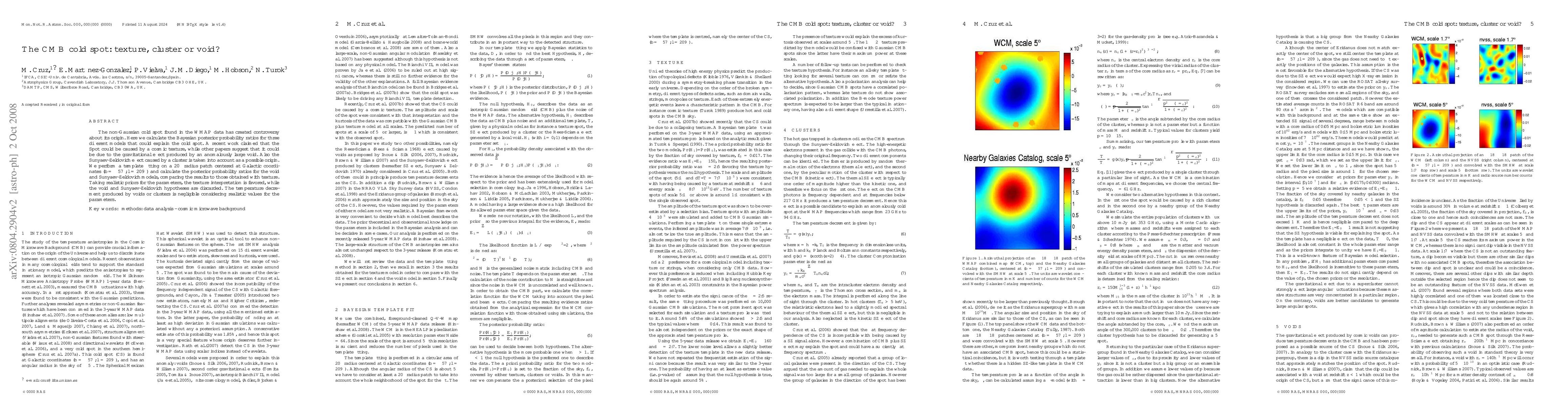 This paper investigates the origin of the CMB cold spot observed in WMAP data, evaluating three models: cosmic texture, large void, and Sunyaev-Zeldovich effect from a cluster. The Bayesian analysis favors the texture model over void and cluster effects, which are deemed negligible.