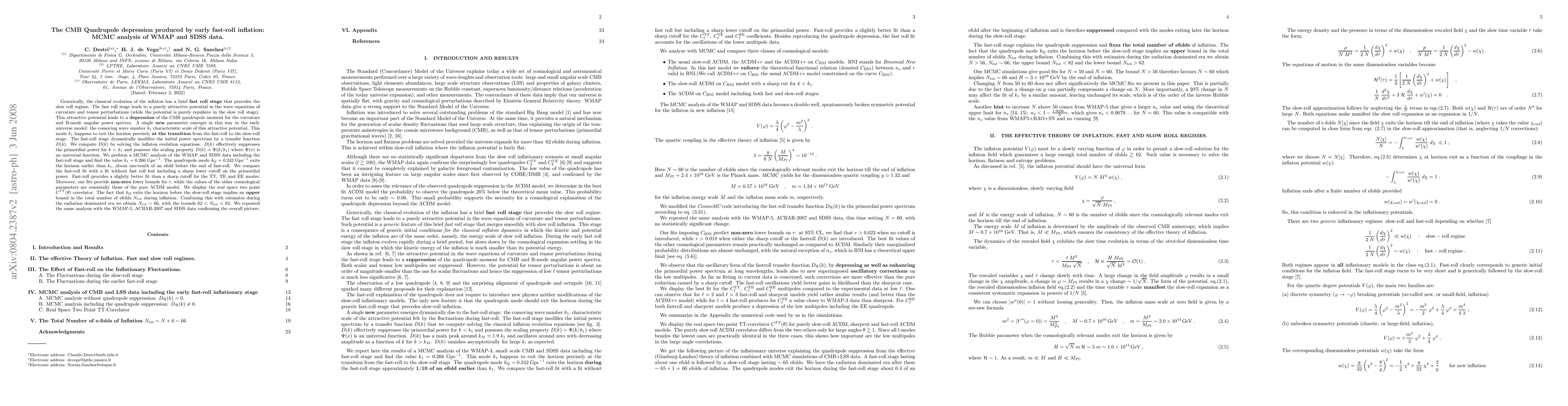 Generically,the classical evolution of the inflaton has a brief fast roll stage that precedes the slow roll regime. The fast roll stage leads to a purely attractive potential for the curvature and tensor perturbations (this potential is purely repulsive in slowroll). This attractive potential depresses the CMB quadrupole moment for the curvature and B-mode spectra. A single new cosmological parameter emerges: the comoving wavenumber k_1 characteristic scale of this attractive potential.k_1 happens to exit the horizon precisely at the transition from fast to slowroll.The fastroll stage dynamically modifies the initial power spectrum by a transfer function D(k). We compute D(k) by solving the inflaton evolution equations. D(k) suppresses the primordial power for k < k_1 and enjoys the scaling property D(k) = Psi(k/k_1) where Psi(x) is an universal function. We perform a MCMC analysis of the WMAP/SDSS data including the fast-roll stage and find k_1 = 0.266/Gpc. The quadrupole mode k_Q = 0.242/Gpc exits the horizon 1/10 of an efold before k_1. We compare the fastroll fit with a fit with a sharp lower cutoff on the primordial power. Fastroll provides a slightly better fit than a sharp cutoff for the TT,TE and EE modes.Moreover, our fits provide non-zero lower bounds for r, while for the other cosmological parameters we essentially get those of the LCDM model. The fact that k_Q exits the horizon before the slowroll stage implies an upper bound in the total number of efolds N_{tot} during inflation.Combining this with estimates during the radiation dominated era we obtain N_{tot} ~ 66, with the bounds 62 < N_{tot} < 82.We repeated the analysis with the WMAP-5/ACBAR-2007/SDSS data confirming the overall picture.