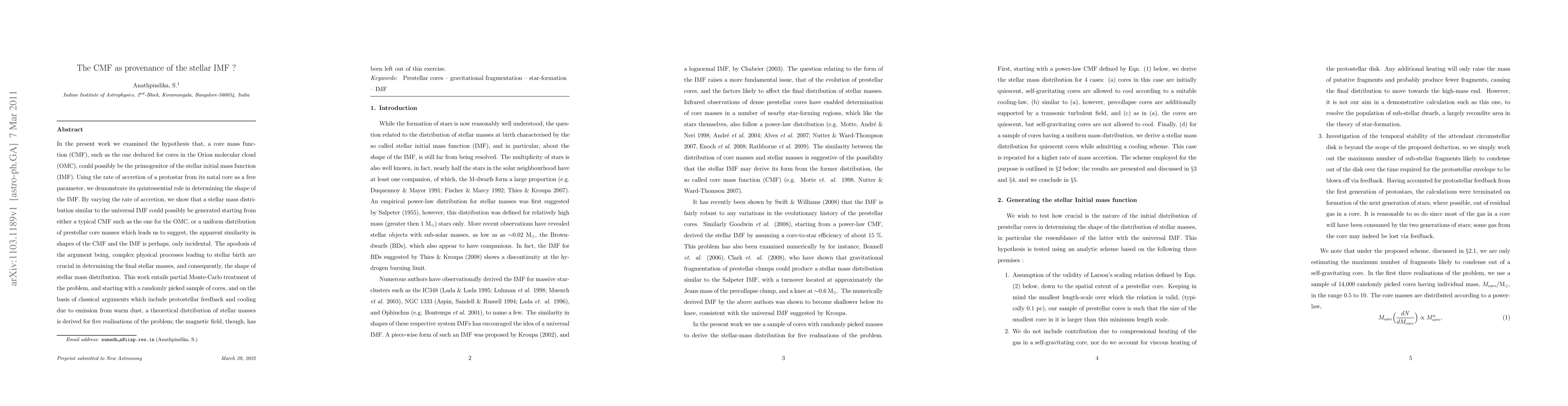 In the present work we examined the hypothesis that, a core mass function (CMF), such as the one deduced for cores in the Orion molecular cloud (OMC), could possibly be the primogenitor of the stellar initial mass function (IMF). Using the rate of accretion of a protostar from its natal core as a free parameter, we demonstrate its quintessential role in determining the shape of the IMF. By varying the rate of accretion, we show that a stellar mass distribution similar to the universal IMF could possibly be generated starting from either a typical CMF such as the one for the OMC, or a uniform distribution of prestellar core masses which leads us to suggest, the apparent similarity in shapes of the CMF and the IMF is perhaps, only incidental. The apodosis of the argument being, complex physical processes leading to stellar birth are crucial in determining the final stellar masses, and consequently, the shape of stellar mass distribution. This work entails partial Monte-Carlo treatment of the problem, and starting with a randomly picked sample of cores, and on the basis of classical arguments which include protostellar feedback and cooling due to emission from warm dust, a theoretical distribution of stellar masses is derived for five realisations of the problem; the magnetic field, though, has been left out of this exercise.