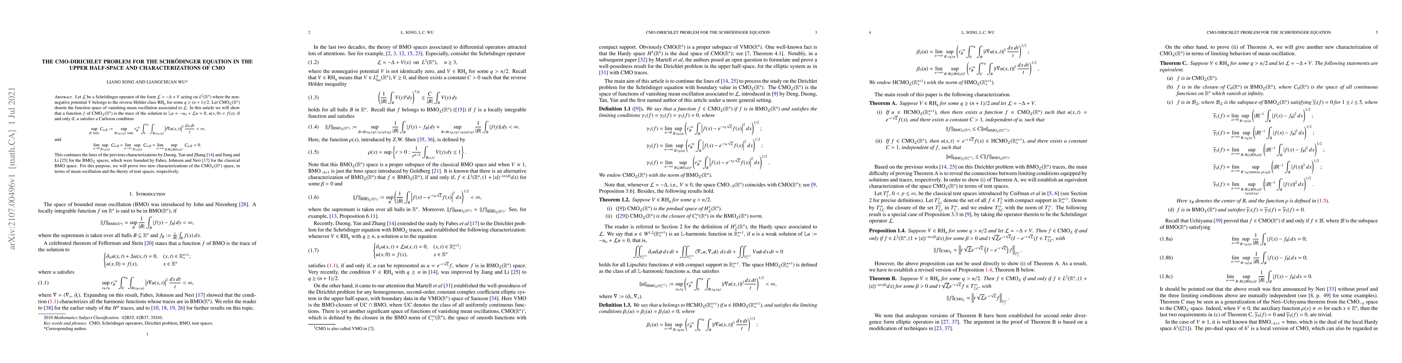 This paper investigates the CMO-Dirichlet problem for the Schrödinger equation in the upper half-space, proving that functions in the vanishing mean oscillation space associated with a Schrödinger operator satisfy a Carleson condition. It extends previous characterizations of BMO spaces to the CMO space using mean oscillation and tent space theory.