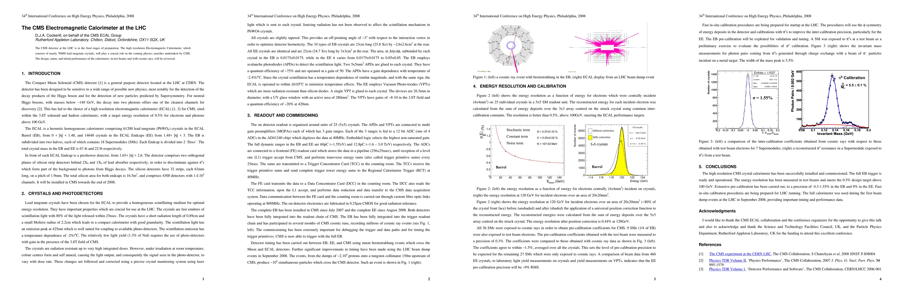 The CMS Electromagnetic Calorimeter, composed of nearly 76,000 lead tungstate crystals, is nearing completion and is set to significantly contribute to CMS's physics investigations. This summary reviews its design, current status, and preliminary performance in test beams and cosmic ray experiments.
