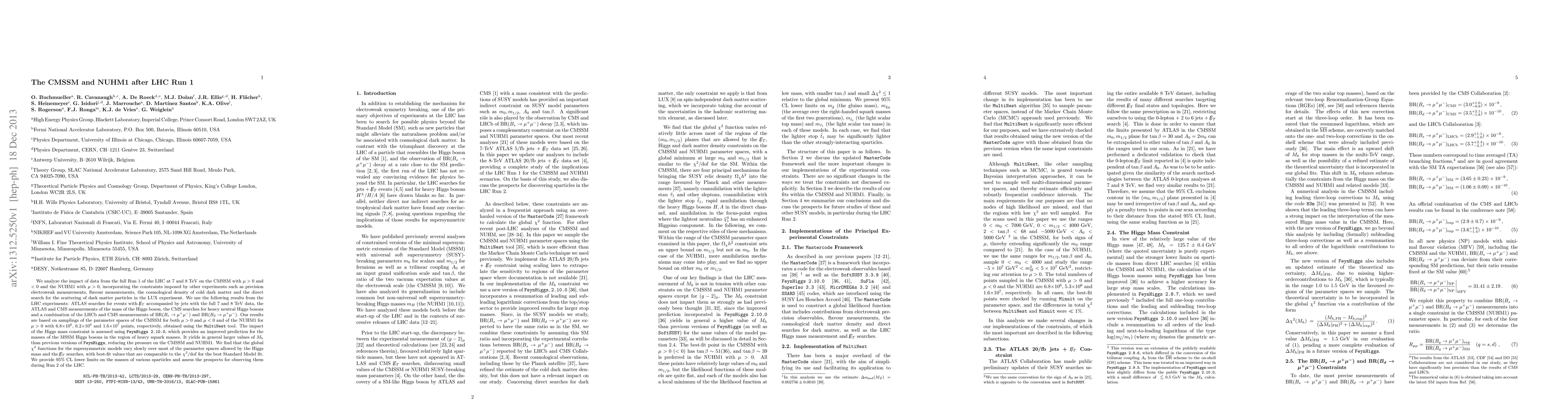 We analyze the impact of data from the full Run 1 of the LHC at 7 and 8 TeV on the CMSSM with mu > 0 and < 0 and the NUHM1 with mu > 0, incorporating the constraints imposed by other experiments such as precision electroweak measurements, flavour measurements, the cosmological density of cold dark matter and the direct search for the scattering of dark matter particles in the LUX experiment. We use the following results from the LHC experiments: ATLAS searches for events with MET accompanied by jets with the full 7 and 8 TeV data, the ATLAS and CMS measurements of the mass of the Higgs boson, the CMS searches for heavy neutral Higgs bosons and a combination of the LHCb and CMS measurements of B_s to mu+mu- and B_d to mu+mu-. Our results are based on samplings of the parameter spaces of the CMSSM for both mu>0 and mu<0 and of the NUHM1 for mu > 0 with 6.8 x 10^6, 6.2 x 10^6 and 1.6 x 10^7 points, respectively, obtained using the MultiNest tool. The impact of the Higgs mass constraint is assessed using FeynHiggs 2.10.0, which provides an improved prediction for the masses of the MSSM Higgs bosons in the region of heavy squark masses. It yields in general larger values of M_h than previous versions of FeynHiggs, reducing the pressure on the CMSSM and NUHM1. We find that the global chi^2 functions for the supersymmetric models vary slowly over most of the parameter spaces allowed by the Higgs mass and the MET searches, with best-fit values that are comparable to the chi^2/dof for the best Standard Model fit. We provide 95% CL lower limits on the masses of various sparticles and assess the prospects for observing them during Run 2 of the LHC.