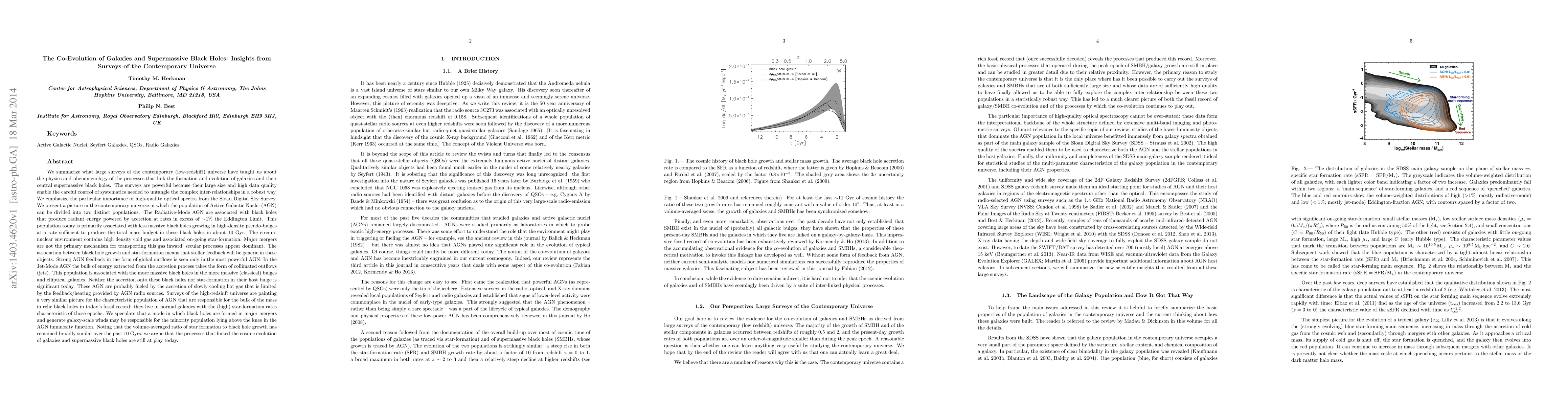 This paper reviews the co-evolution of galaxies and supermassive black holes, revealing two AGN populations: Radiative-Mode AGN linked to less massive black holes in high-density pseudo-bulges, and Jet-Mode AGN associated with more massive black holes in classical bulges. Secular processes dominate gas transport in the former, while the latter is fueled by slowly cooling hot gas.