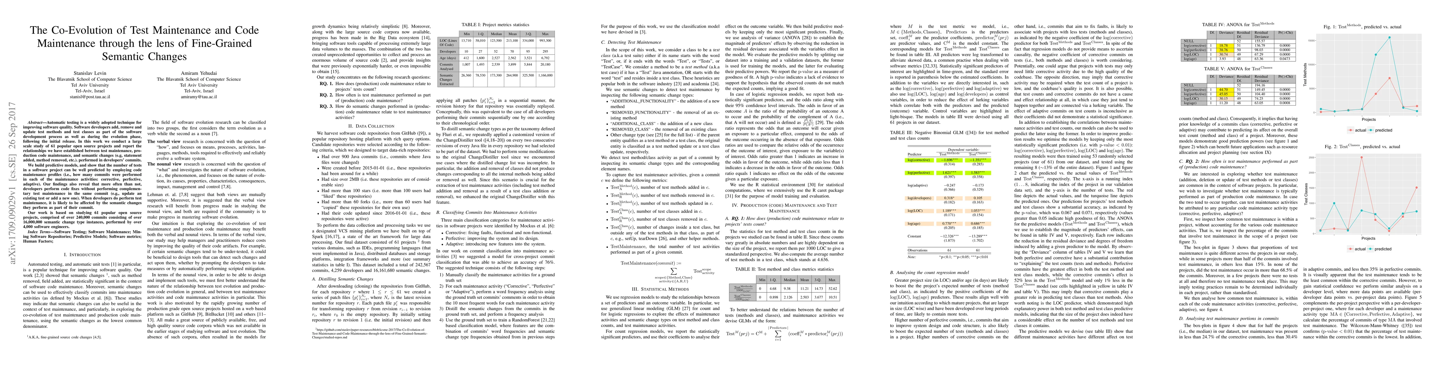 Automatic testing is a widely adopted technique for improving software quality. Software developers add, remove and update test methods and test classes as part of the software development process as well as during the evolution phase, following the initial release. In this work we conduct a large scale study of 61 popular open source projects and report the relationships we have established between test maintenance, production code maintenance, and semantic changes (e.g, statement added, method removed, etc.). performed in developers' commits. We build predictive models, and show that the number of tests in a software project can be well predicted by employing code maintenance profiles (i.e., how many commits were performed in each of the maintenance activities: corrective, perfective, adaptive). Our findings also reveal that more often than not, developers perform code fixes without performing complementary test maintenance in the same commit (e.g., update an existing test or add a new one). When developers do perform test maintenance, it is likely to be affected by the semantic changes they perform as part of their commit. Our work is based on studying 61 popular open source projects, comprised of over 240,000 commits consisting of over 16,000,000 semantic change type instances, performed by over 4,000 software engineers.