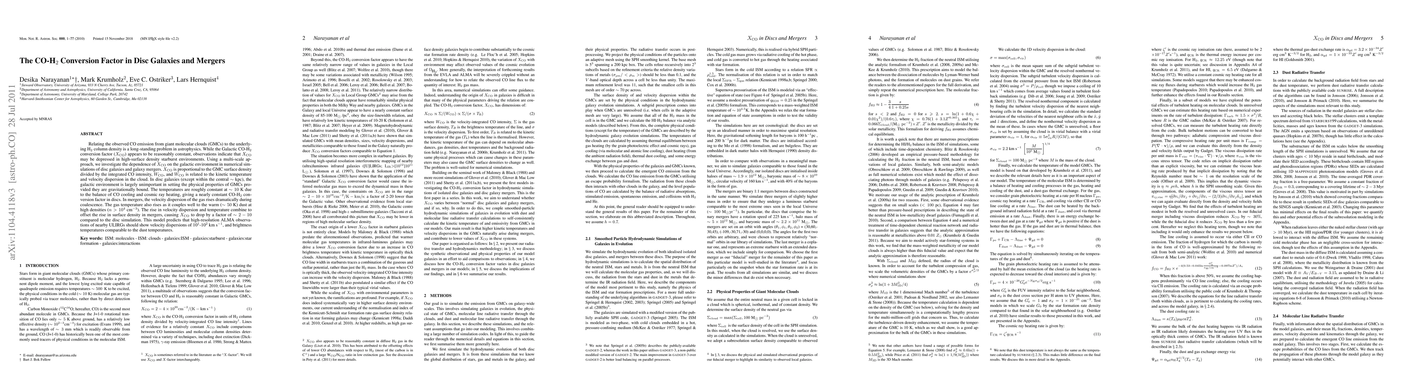 This paper investigates the CO-H2 conversion factor (Xco) in disc galaxies and mergers, finding that Xco is nearly constant in discs due to balanced cooling and heating processes. In mergers, however, Xco drops significantly due to increased gas velocity dispersion and temperature, leading to predictions of high velocity dispersions and brightness temperatures in ULIRGs.
