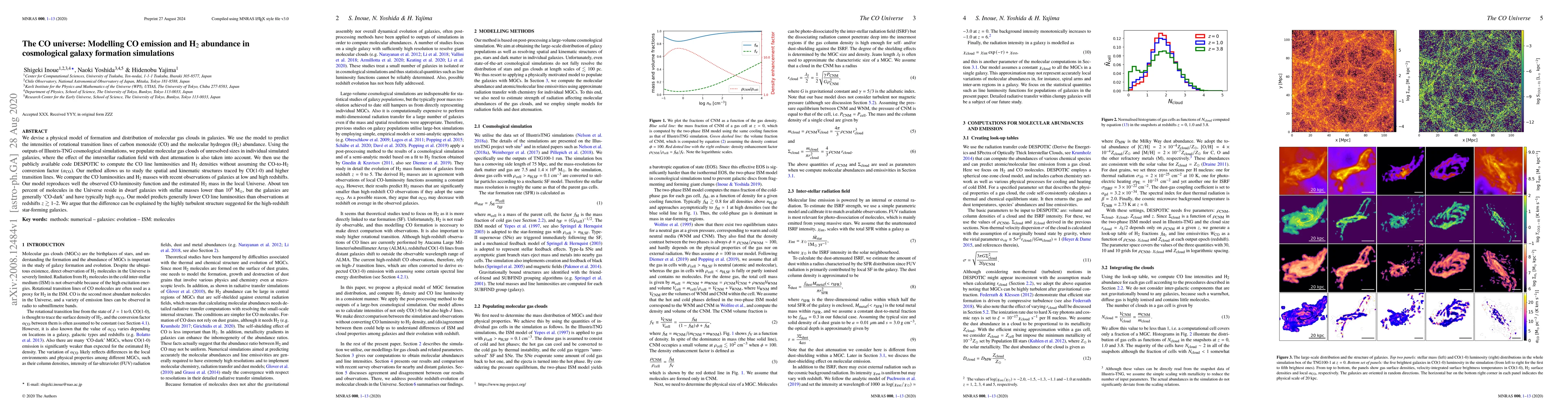This research develops a model to predict CO emission and H2 abundance in galaxies using Illustris-TNG simulations. The model, validated against local universe observations, suggests that dwarf galaxies host ~10% of cosmic molecules but are often 'CO-dark' with high CO-to-H2 conversion factors. The model underpredicts high-redshift CO luminosities, which could be due to unaccounted turbulence in star-forming galaxies at those epochs.