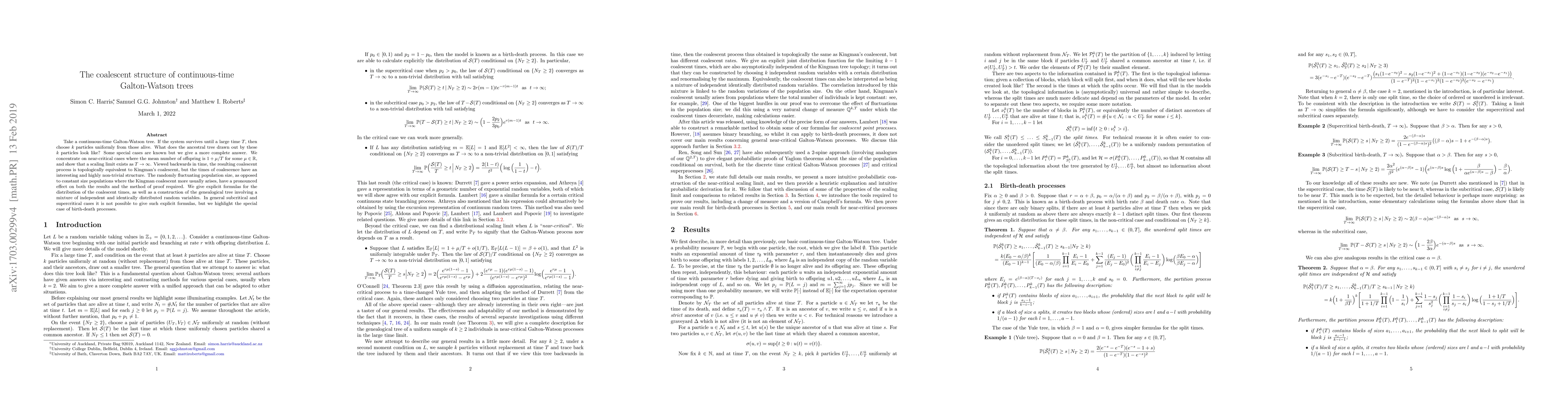 This paper investigates the coalescent structure of continuous-time Galton-Watson trees, focusing on near-critical cases where the mean offspring number approaches 1. It demonstrates a scaling limit that leads to a coalescent process topologically equivalent to Kingman's coalescent, with a unique structure due to fluctuating population sizes, and provides explicit formulas for coalescent times in this context.