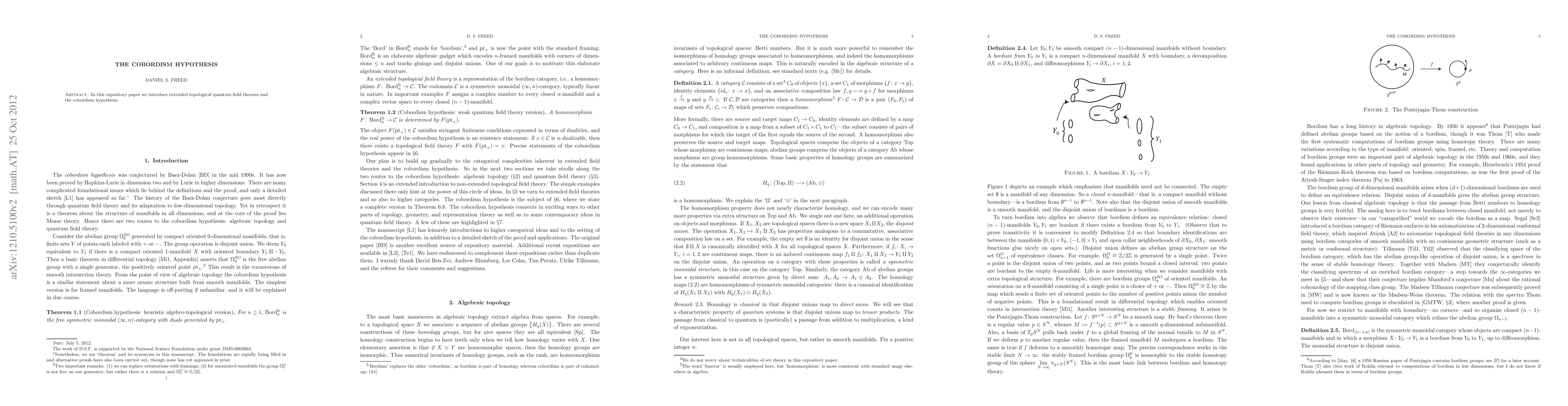 Summary: This paper introduces extended topological quantum field theories and presents the cobordism hypothesis, which connects these theories to certain types of cobordisms, providing a framework for understanding their mathematical structure.