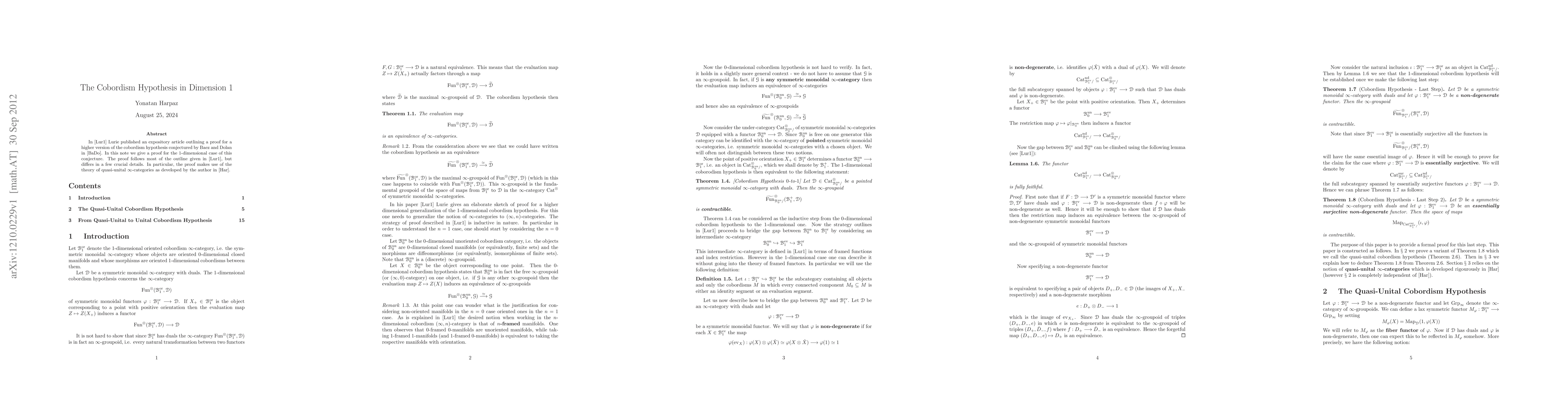 Summary: This paper presents a proof for the 1-dimensional case of the cobordism hypothesis, closely following Lurie's higher-dimensional proof outline but utilizing the author's theory of quasi-unital $\infty$-categories. It marks a significant step towards verifying the broader conjecture proposed by Baez and Dolan.