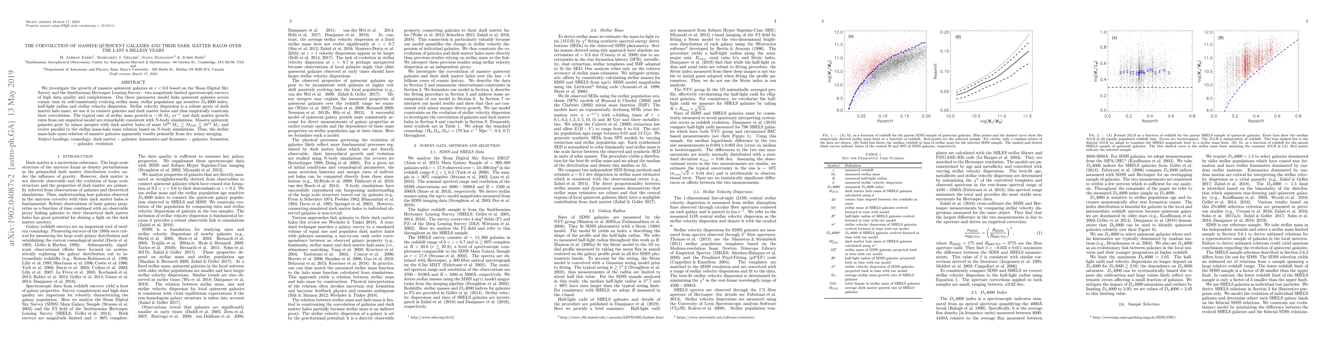 This study uses the Sloan Digital Sky Survey and Smithsonian Hectospec Lensing Survey to model the growth of massive quiescent galaxies over the last 6 billion years, finding that their evolution parallels the stellar mass-halo mass relation primarily through dry minor mergers. The research links stellar velocity dispersion to dark matter halo mass, showing consistent growth rates with N-body simulations.