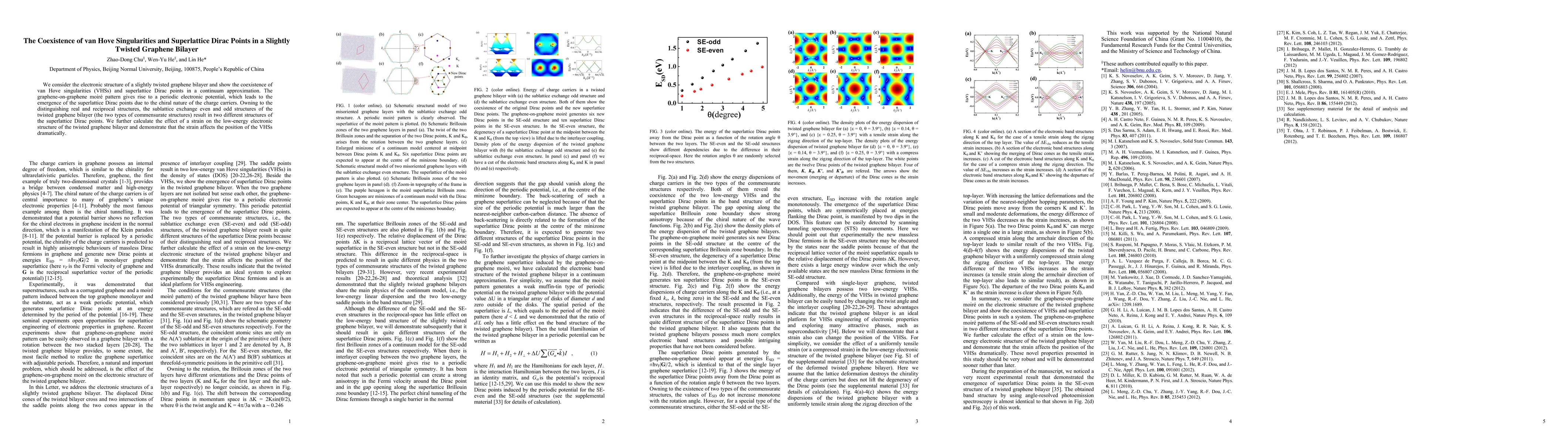 This study explores the electronic structure of a slightly twisted graphene bilayer, revealing the coexistence of van Hove singularities and superlattice Dirac points due to the chiral charge carriers. The strain significantly alters the position of van Hove singularities in this unique moiré pattern system.