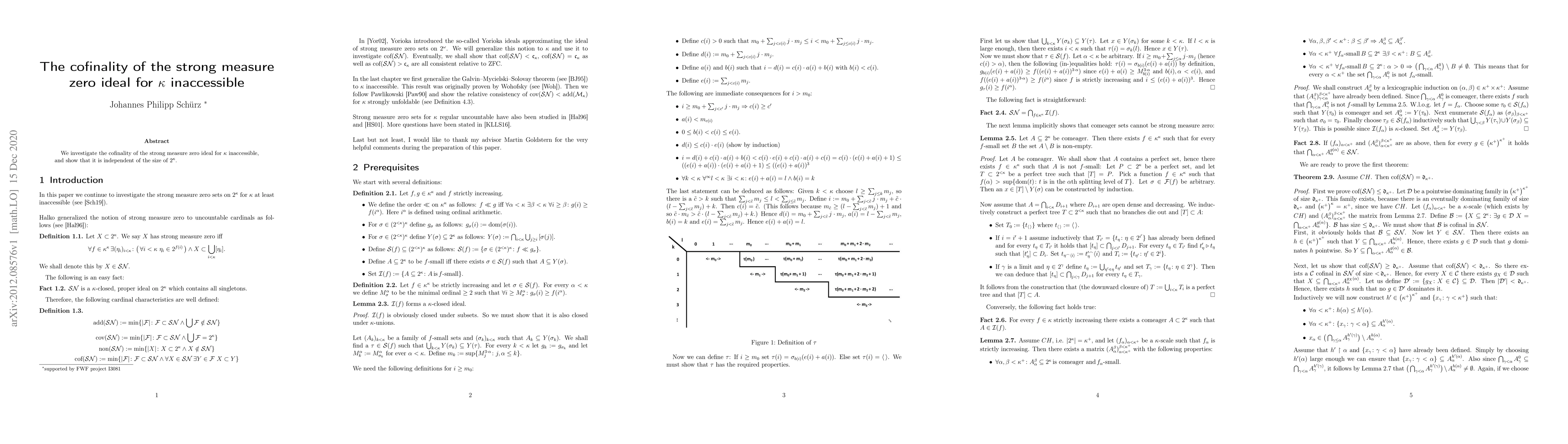 Summary: This research explores the cofinality of the strong measure zero ideal for an inaccessible cardinal $\kappa$, demonstrating that its cofinality is independent of the cardinality of $2^\kappa$.