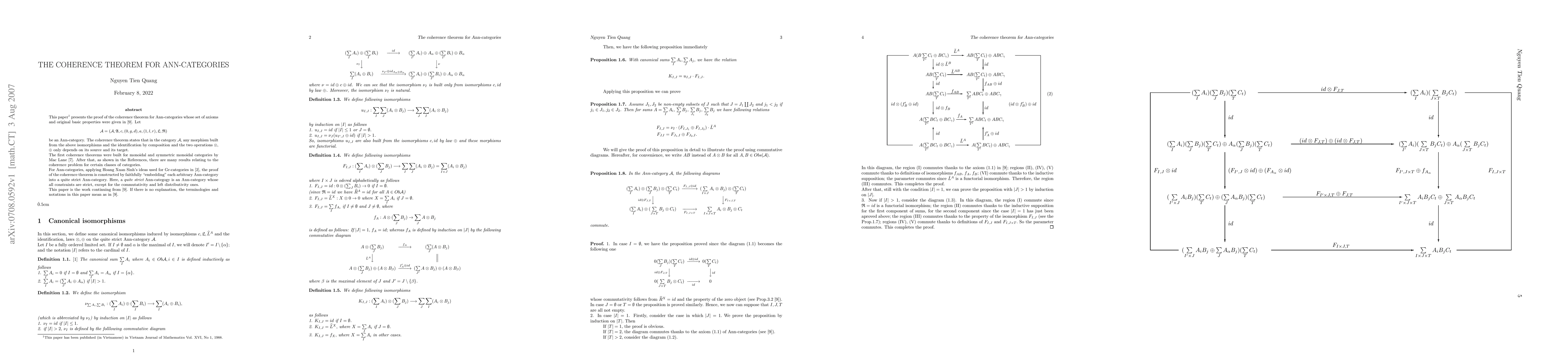 This paper proves the coherence theorem for Ann-categories, showing that any morphism in such a category depends only on its source and target. The proof follows Hoang Xuan Sinh's method for embedding arbitrary Ann-categories into strict ones, extending previous coherence results for monoidal categories by Mac Lane.