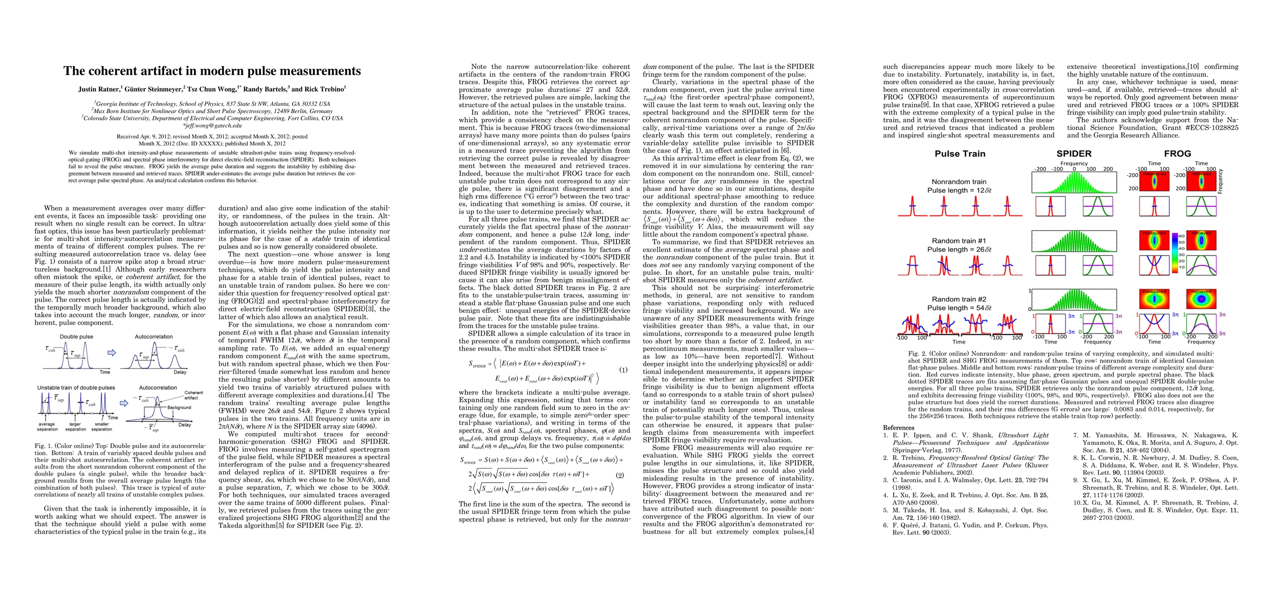 We simulate multi-shot intensity-and-phase measurements of unstable ultrashort-pulse trains using frequency-resolved-optical-gating (FROG) and spectral phase interferometry for direct electric-field reconstruction (SPIDER). Both techniques fail to reveal the pulse structure. FROG yields the average pulse duration and suggests the instability by exhibiting disagreement between measured and retrieved traces. SPIDER under-estimates the average pulse duration but retrieves the correct average pulse spectral phase. An analytical calculation confirms this behavior.