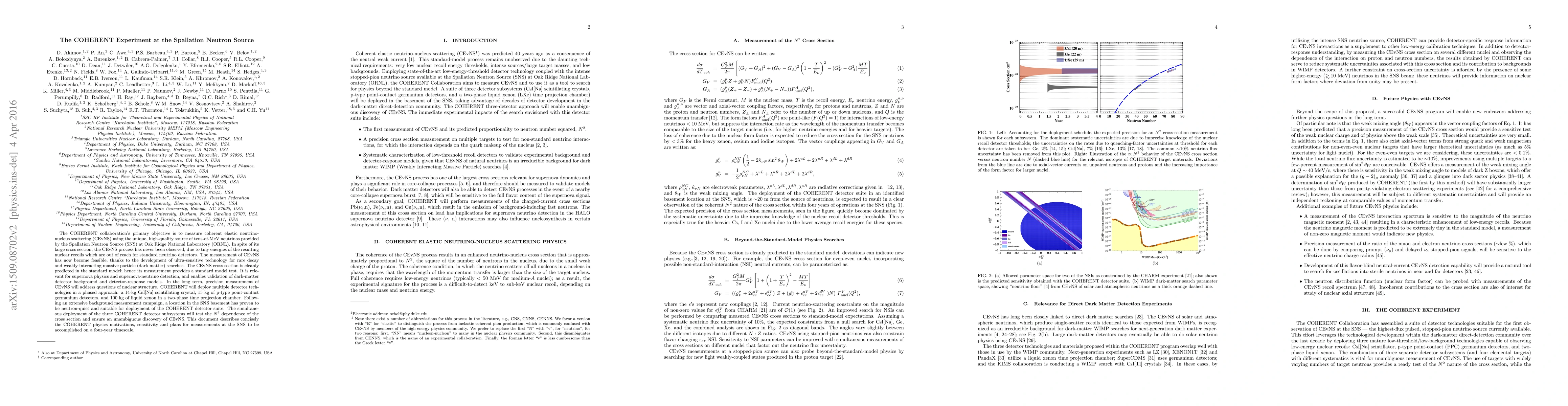 This experiment is the first to attempt to directly observe CEvNS, taking advantage of the unique, high-quality neutrino source provided by the SNS, and deploying multiple detector technologies to ensure a robust measurement.