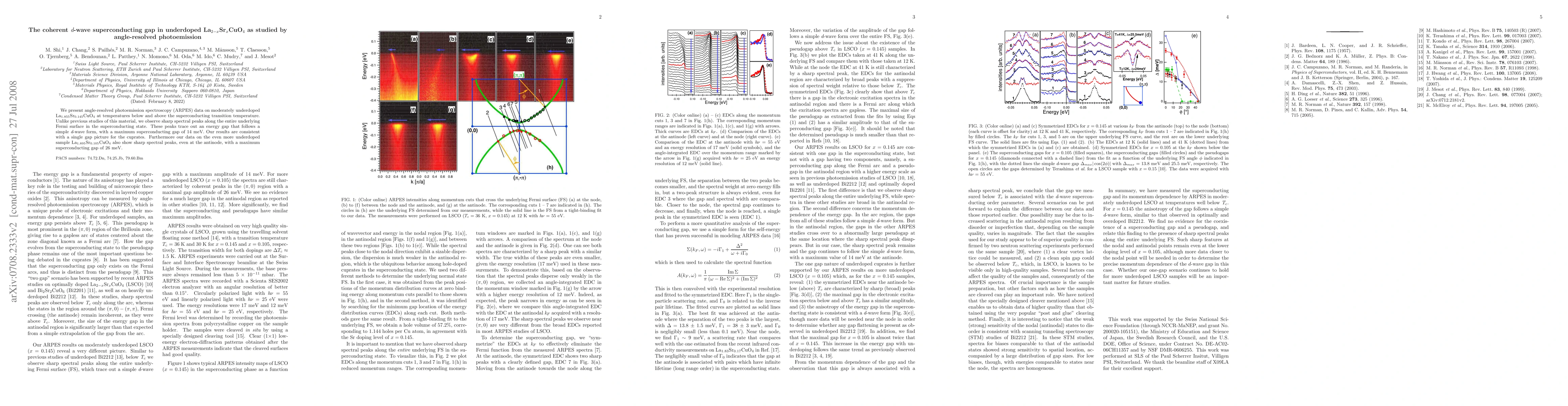 This study uses ARPES to reveal a coherent {\it d}-wave superconducting gap in underdoped La$_{2-x}$Sr$_{x}$CuO$_4$, showing sharp spectral peaks across the Fermi surface in the superconducting state. The data supports a single gap model for cuprates, with a maximum gap of 14 meV in La$_{1.855}$Sr$_{0.145}$CuO$_4$ and 26 meV in La$_{1.895}$Sr$_{0.105}$CuO$_4$.