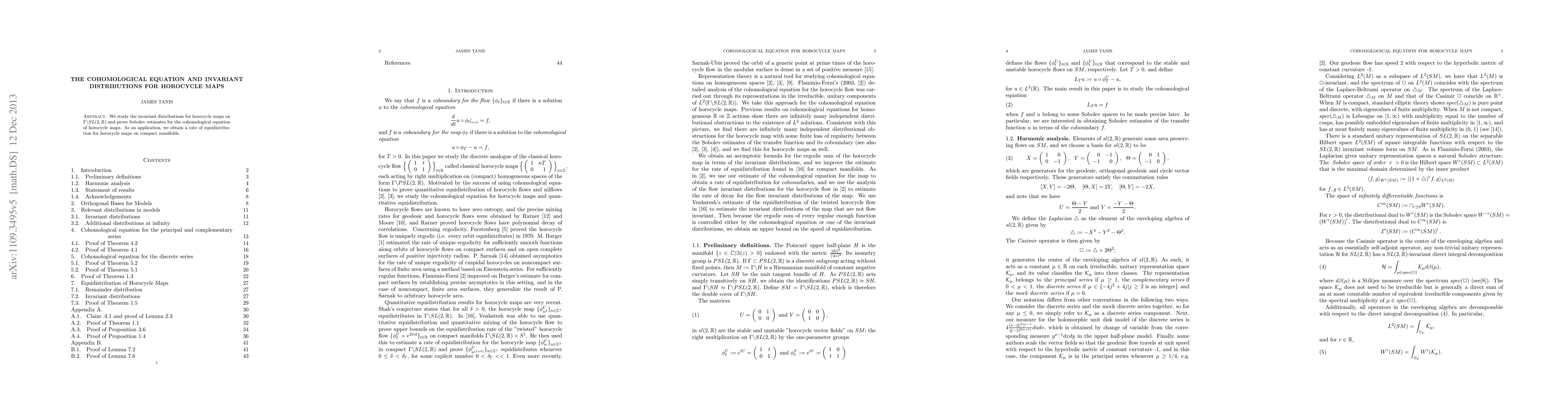 This paper investigates invariant distributions for horocycle maps on $\Gamma\backslash SL(2, \mathbb{R})$, proving Sobolev estimates for the cohomological equation associated with these maps. The findings lead to an estimate for the rate of equidistribution in horocycle maps on compact manifolds.